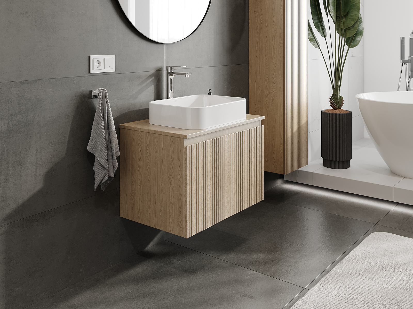 Mexen Rivel koupelnová skříňka pod umyvadlo 70 cm, 1 zásuvka, drážkovaná, dub - 91A20-07047-1-BF81