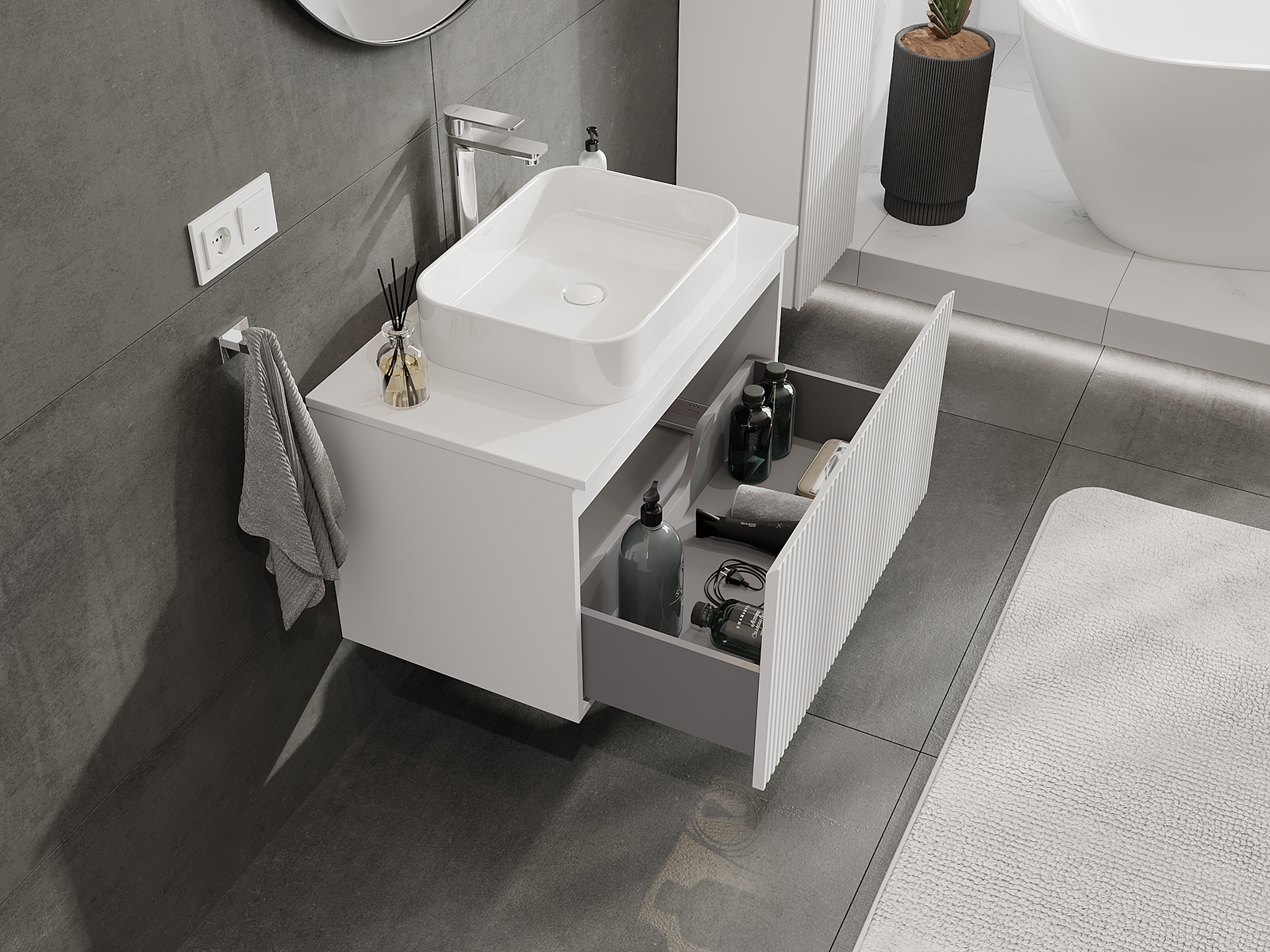 Výřez v zásuvce je navržen tak, aby pojmul sifon, který je nezbytný v instalacích umyvadlových. Díky tomu může být nábytek plně funkčně namontován, aniž by bylo nutné vzdát se prostoru v zásuvce ve prospěch instalace.