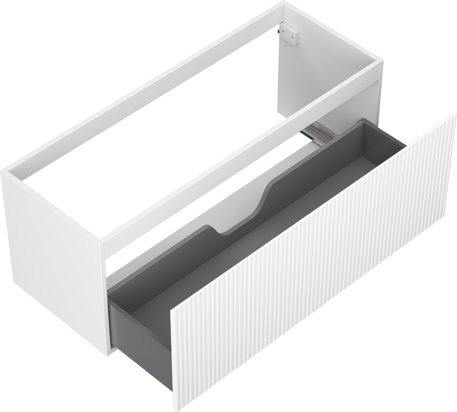 Výřez v zásuvce je navržen tak, aby pojmul sifon, který je nezbytný v instalacích umyvadlových. Díky tomu může být nábytek plně funkčně namontován, aniž by bylo nutné vzdát se prostoru v zásuvce ve prospěch instalace.