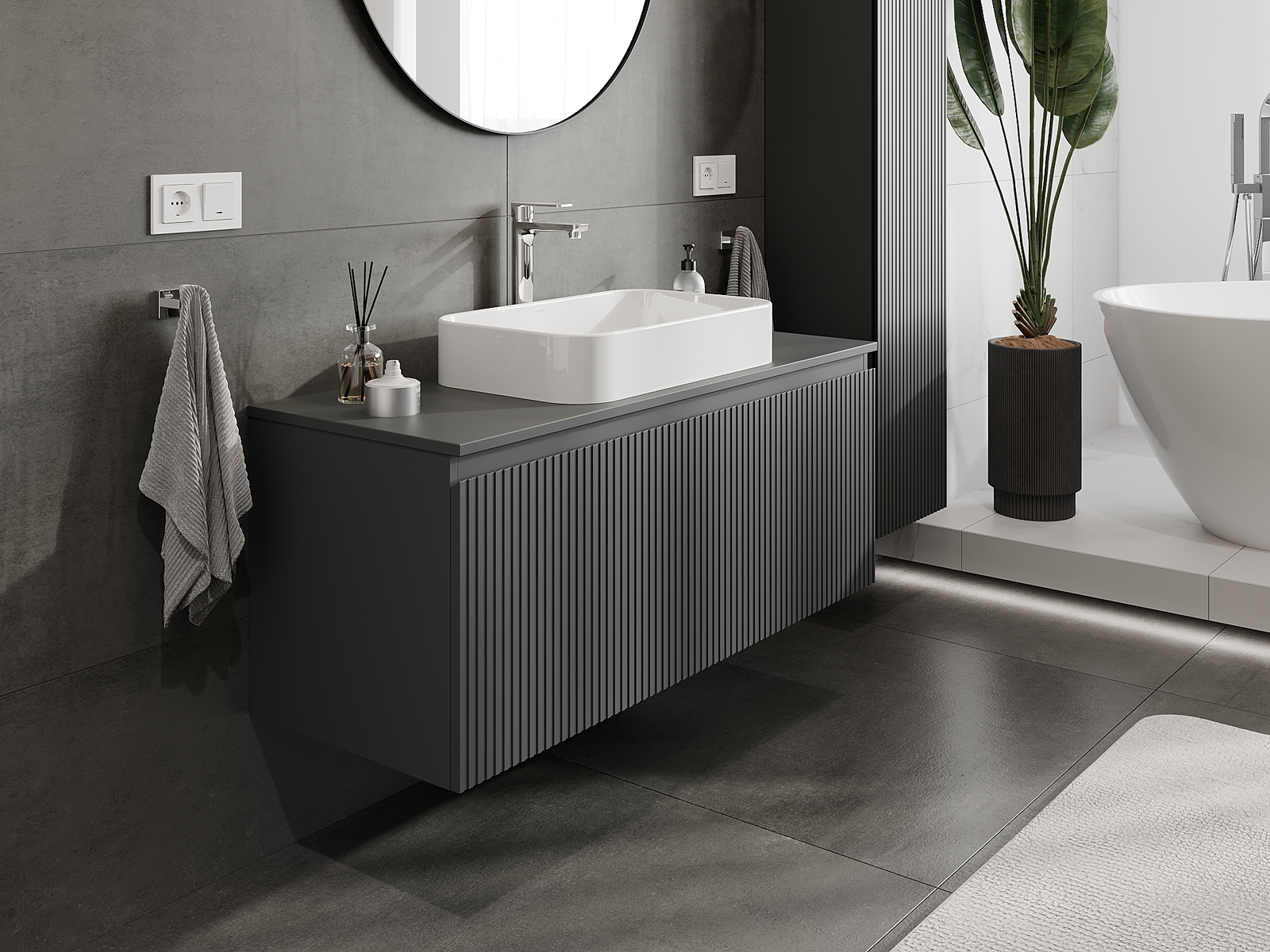 Naše modulární koupelnový nábytek lze kombinovat v různých barevných konfiguracích, což umožňuje plnou personalizaci. Můžete si vybrat jak vzhled, tak funkce jednotlivých prvků, což umožňuje přizpůsobit nábytek vašim stylovým a uživatelským preferencím.