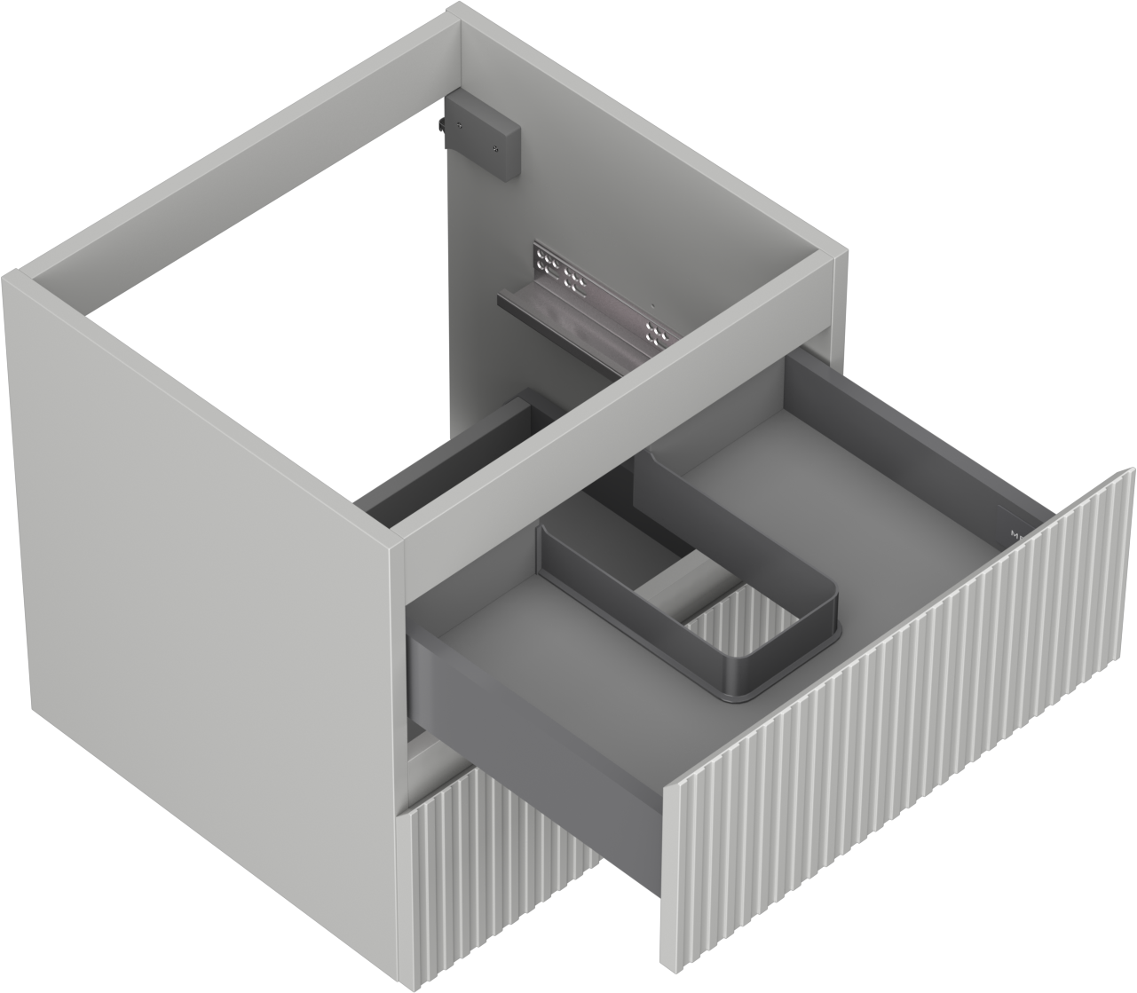 Výřez v zásuvce je navržen tak, aby pojmul sifon, který je nezbytný v instalacích umyvadlových. Díky tomu může být nábytek plně funkčně namontován, aniž by bylo nutné vzdát se prostoru v zásuvce ve prospěch instalace.