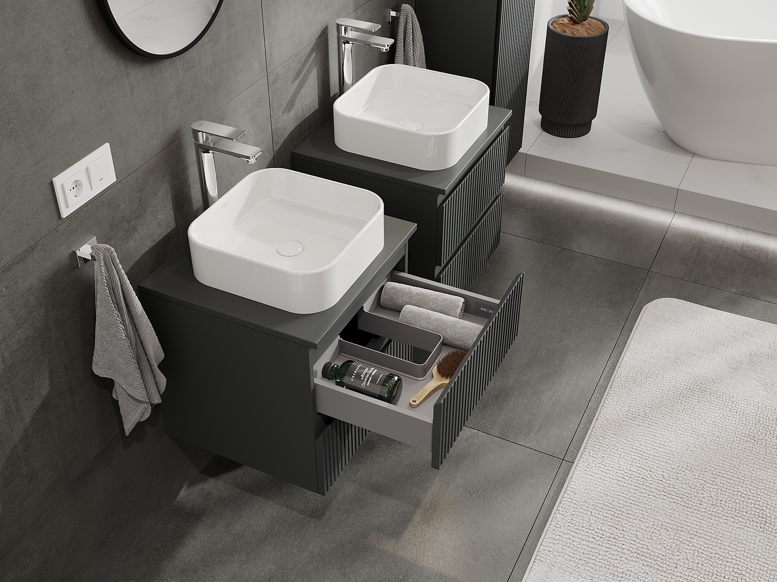 Korpus skříňky je dodáván zcela smontovaný, což znamená maximální pohodlí a úsporu času. Nemusíte ztrácet hodiny skládáním nábytku – stačí jej namontovat na vybrané místo v koupelně. Je to ideální řešení pro osoby, které si cení rychlé montáže a okamžitého efektu.