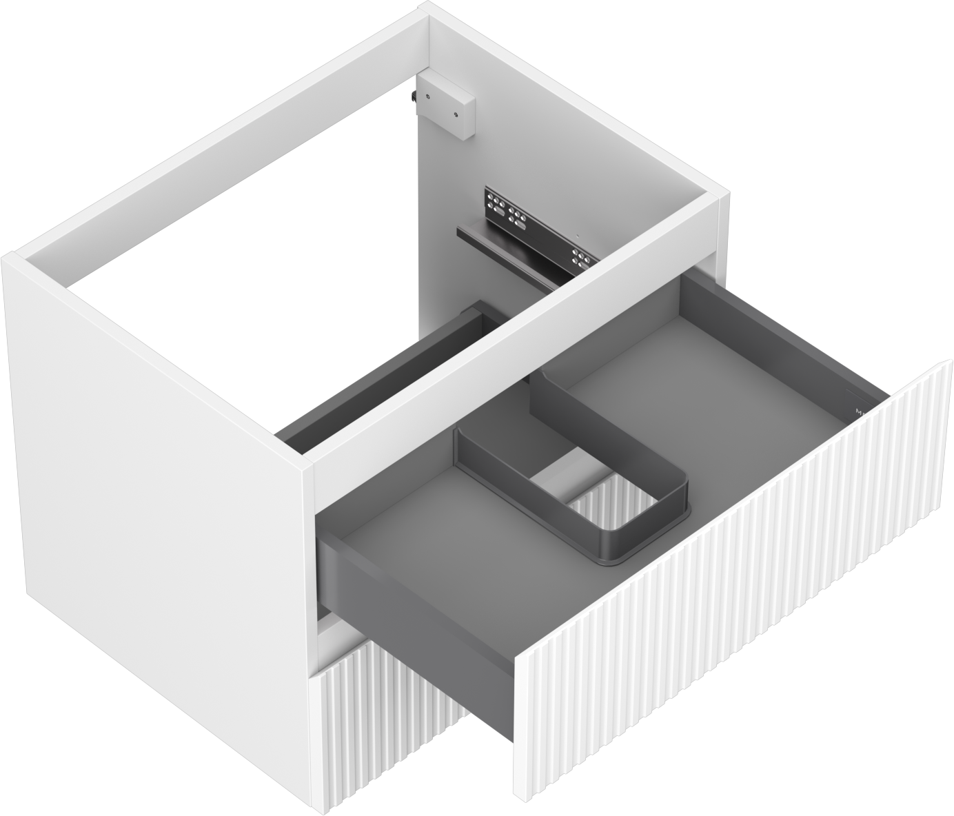 Výřez v zásuvce je navržen tak, aby pojmul sifon, který je nezbytný v instalacích umyvadlových. Díky tomu může být nábytek plně funkčně namontován, aniž by bylo nutné vzdát se prostoru v zásuvce ve prospěch instalace.