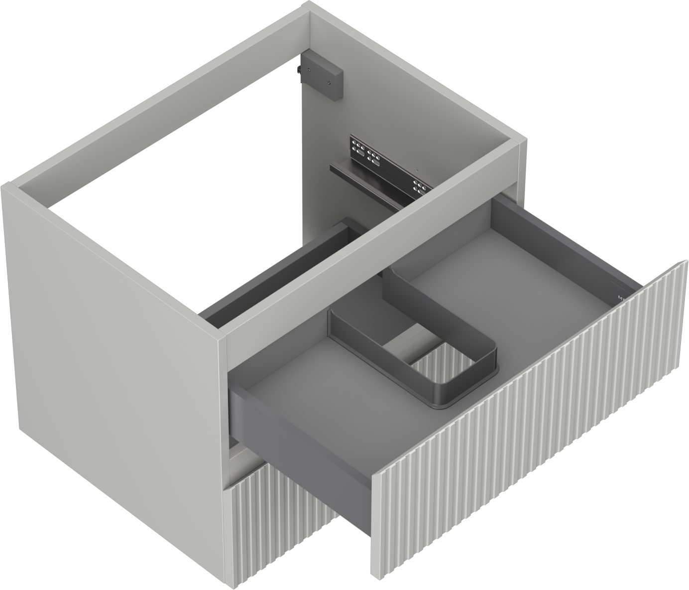 Výřez v zásuvce je navržen tak, aby pojmul sifon, který je nezbytný v instalacích umyvadlových. Díky tomu může být nábytek plně funkčně namontován, aniž by bylo nutné vzdát se prostoru v zásuvce ve prospěch instalace.