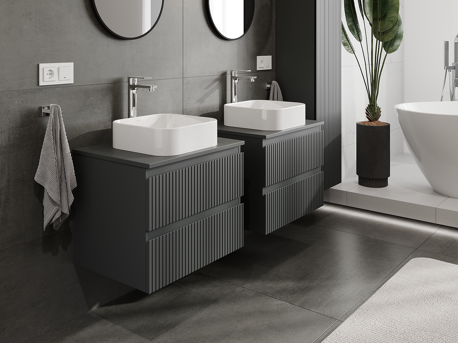 Naše modulární koupelnový nábytek lze kombinovat v různých barevných konfiguracích, což umožňuje plnou personalizaci. Můžete si vybrat jak vzhled, tak funkce jednotlivých prvků, což umožňuje přizpůsobit nábytek vašim stylovým a uživatelským preferencím.