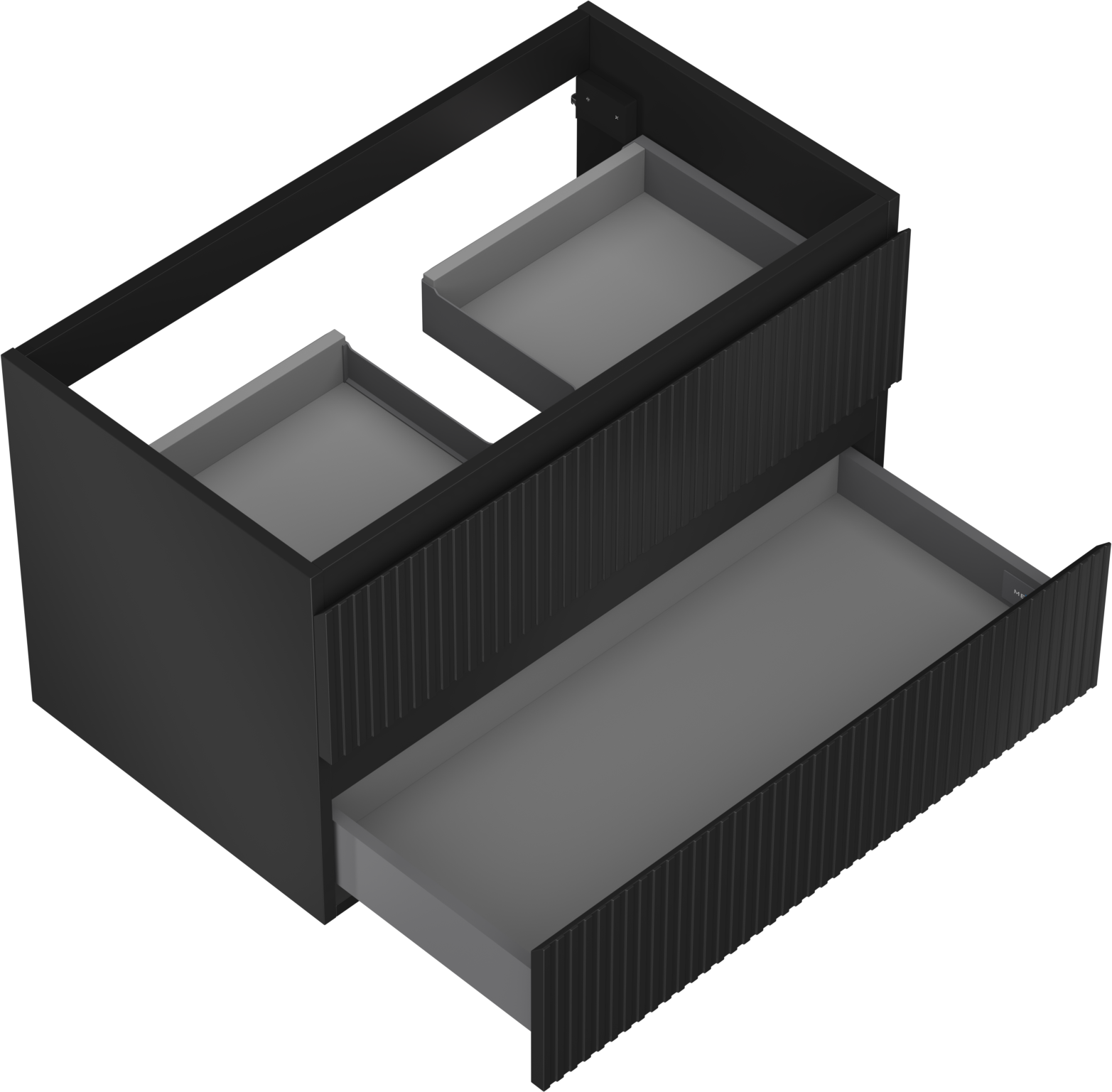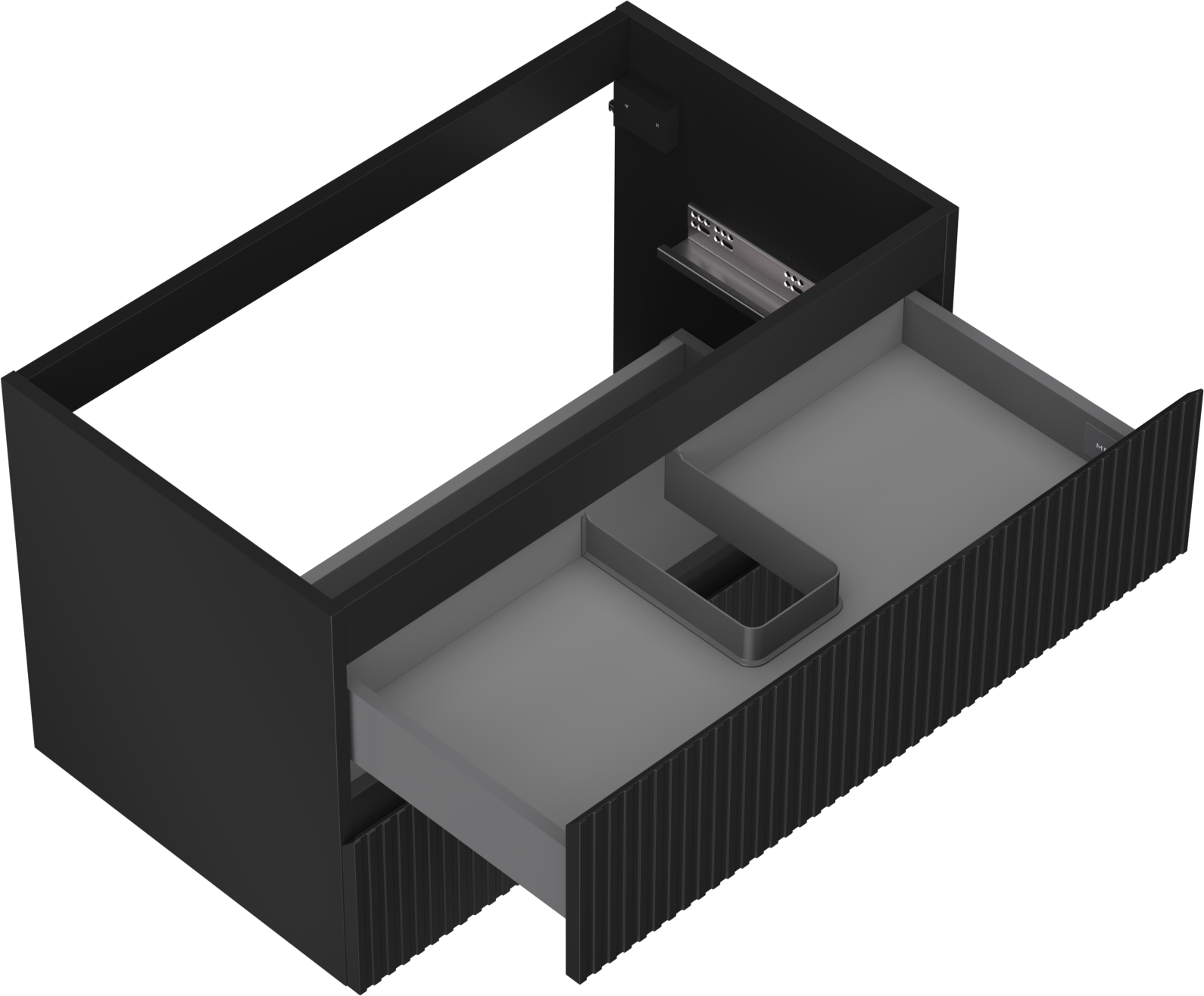 Výřez v zásuvce je navržen tak, aby pojmul sifon, který je nezbytný v instalacích umyvadlových. Díky tomu může být nábytek plně funkčně namontován, aniž by bylo nutné vzdát se prostoru v zásuvce ve prospěch instalace.