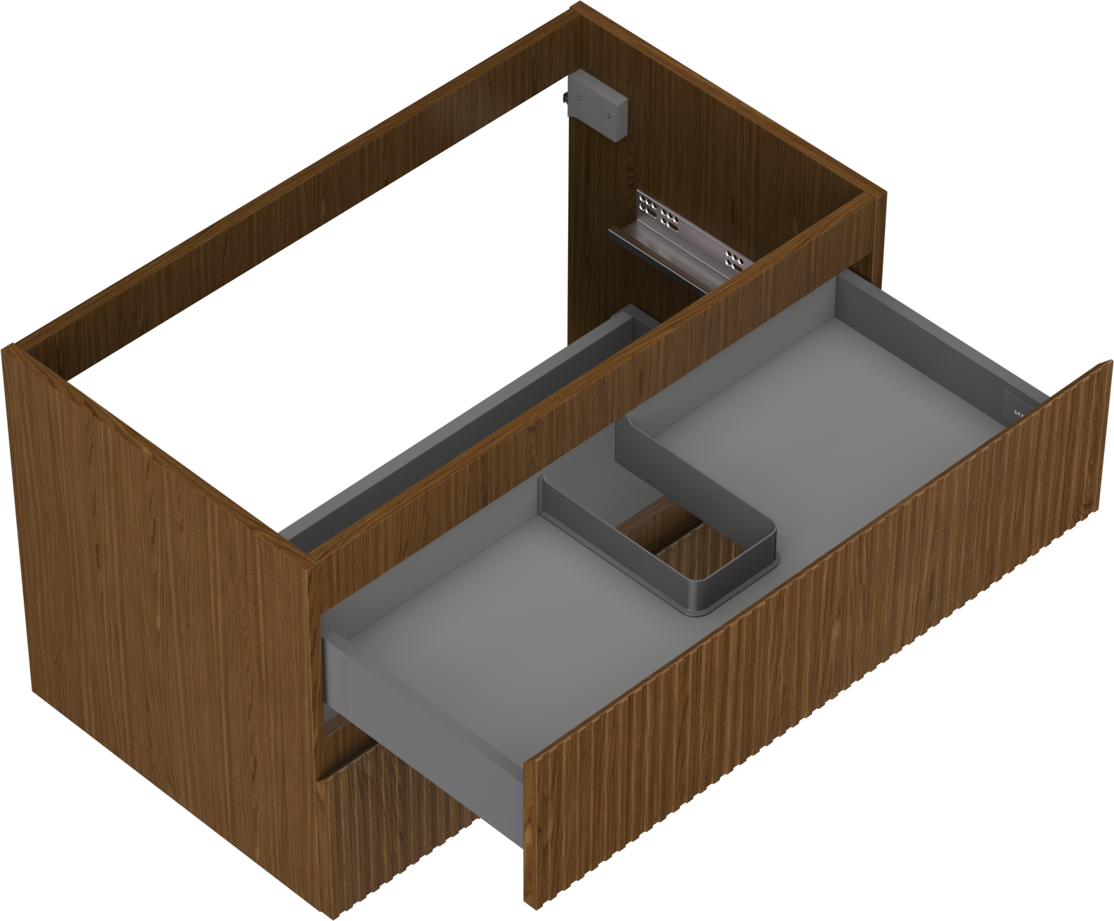 Výřez v zásuvce je navržen tak, aby pojmul sifon, který je nezbytný v instalacích umyvadlových. Díky tomu může být nábytek plně funkčně namontován, aniž by bylo nutné vzdát se prostoru v zásuvce ve prospěch instalace.