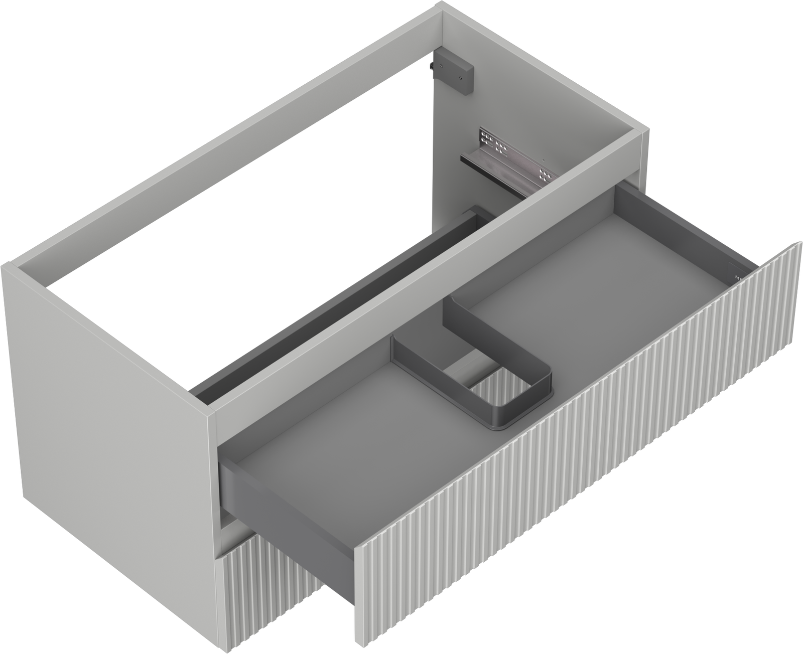 Výřez v zásuvce je navržen tak, aby pojmul sifon, který je nezbytný v instalacích umyvadlových. Díky tomu může být nábytek plně funkčně namontován, aniž by bylo nutné vzdát se prostoru v zásuvce ve prospěch instalace.