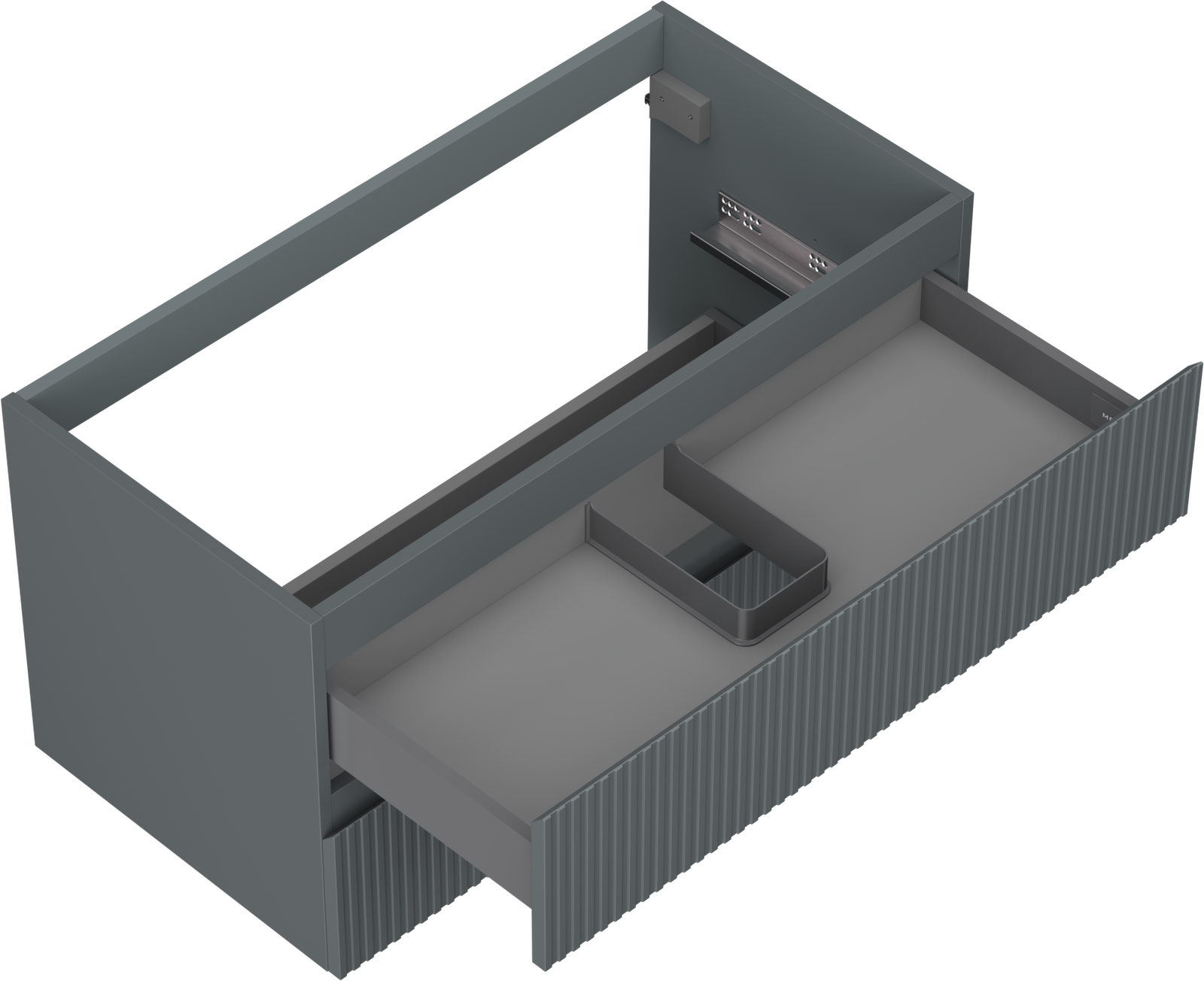 Výřez v zásuvce je navržen tak, aby pojmul sifon, který je nezbytný v instalacích umyvadlových. Díky tomu může být nábytek plně funkčně namontován, aniž by bylo nutné vzdát se prostoru v zásuvce ve prospěch instalace.