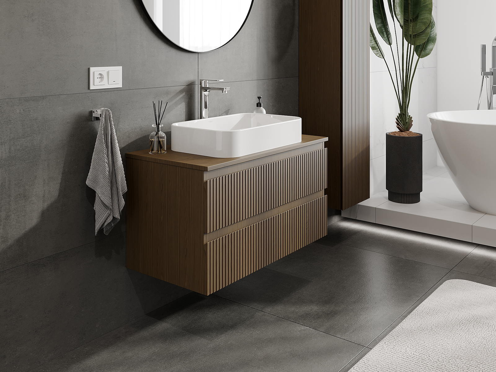 Naše modulární koupelnový nábytek lze kombinovat v různých barevných konfiguracích, což umožňuje plnou personalizaci. Můžete si vybrat jak vzhled, tak funkce jednotlivých prvků, což umožňuje přizpůsobit nábytek vašim stylovým a uživatelským preferencím.