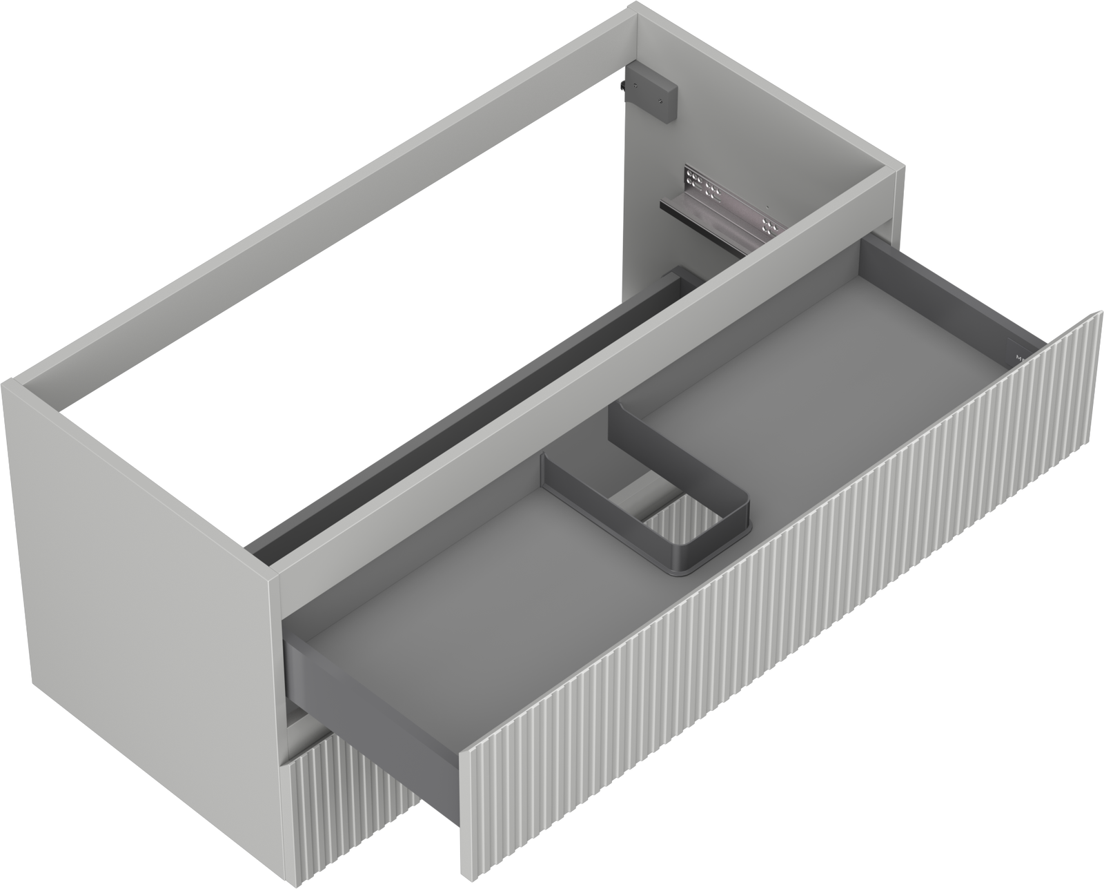 Výřez v zásuvce je navržen tak, aby pojmul sifon, který je nezbytný v instalacích umyvadlových. Díky tomu může být nábytek plně funkčně namontován, aniž by bylo nutné vzdát se prostoru v zásuvce ve prospěch instalace.