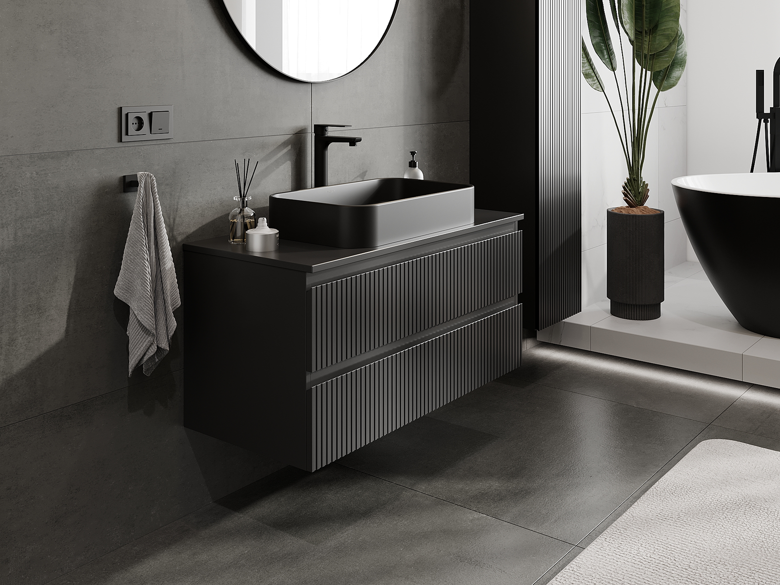 Naše modulární koupelnový nábytek lze kombinovat v různých barevných konfiguracích, což umožňuje plnou personalizaci. Můžete si vybrat jak vzhled, tak funkce jednotlivých prvků, což umožňuje přizpůsobit nábytek vašim stylovým a uživatelským preferencím.