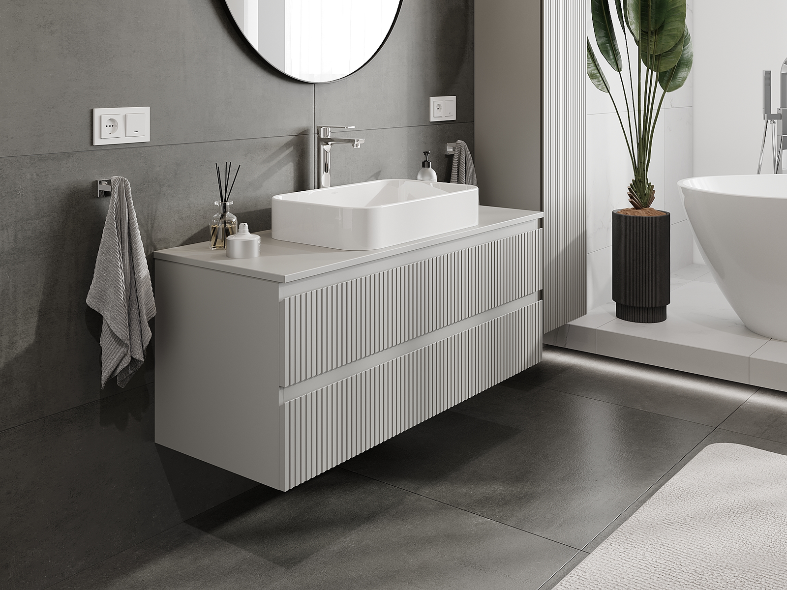 Naše modulární koupelnový nábytek lze kombinovat v různých barevných konfiguracích, což umožňuje plnou personalizaci. Můžete si vybrat jak vzhled, tak funkce jednotlivých prvků, což umožňuje přizpůsobit nábytek vašim stylovým a uživatelským preferencím.