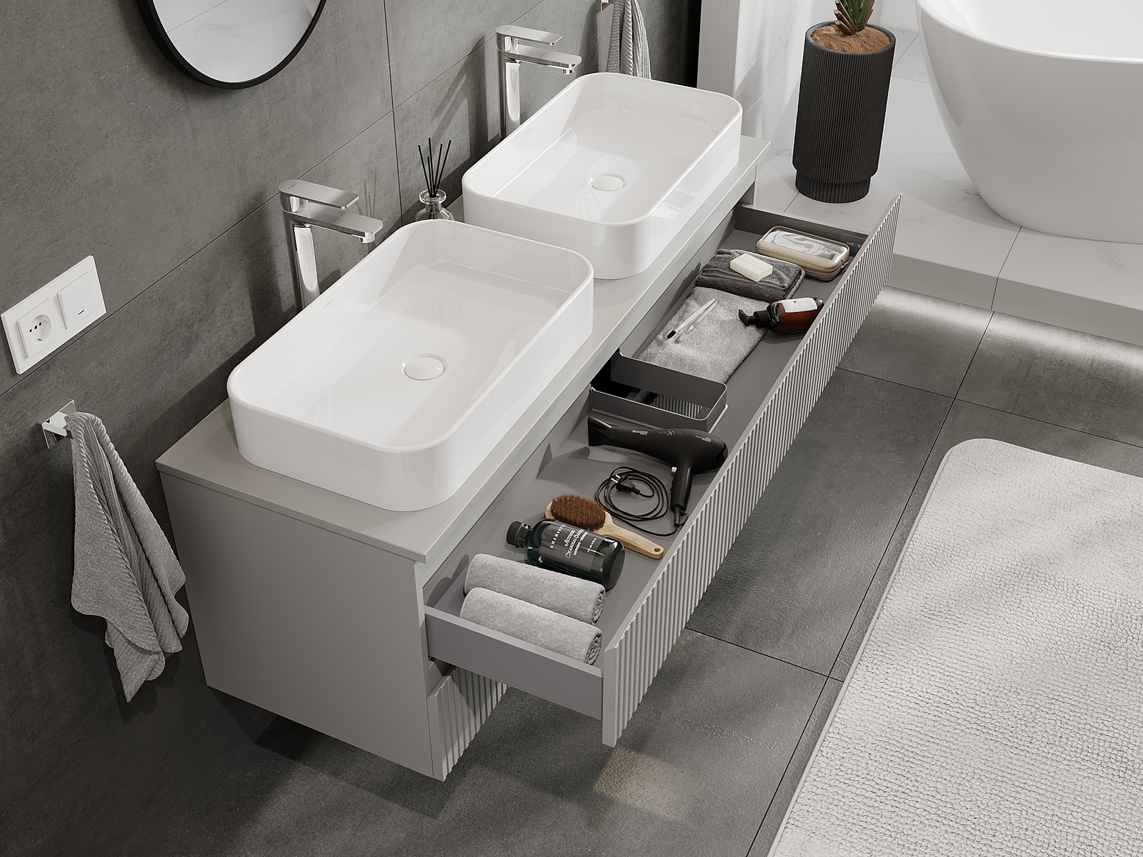 Naše modulární koupelnový nábytek lze kombinovat v různých barevných konfiguracích, což umožňuje plnou personalizaci. Můžete si vybrat jak vzhled, tak funkce jednotlivých prvků, což umožňuje přizpůsobit nábytek vašim stylovým a uživatelským preferencím.