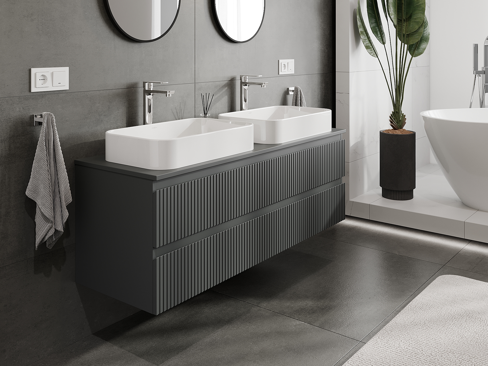 Naše modulární koupelnový nábytek lze kombinovat v různých barevných konfiguracích, což umožňuje plnou personalizaci. Můžete si vybrat jak vzhled, tak funkce jednotlivých prvků, což umožňuje přizpůsobit nábytek vašim stylovým a uživatelským preferencím.