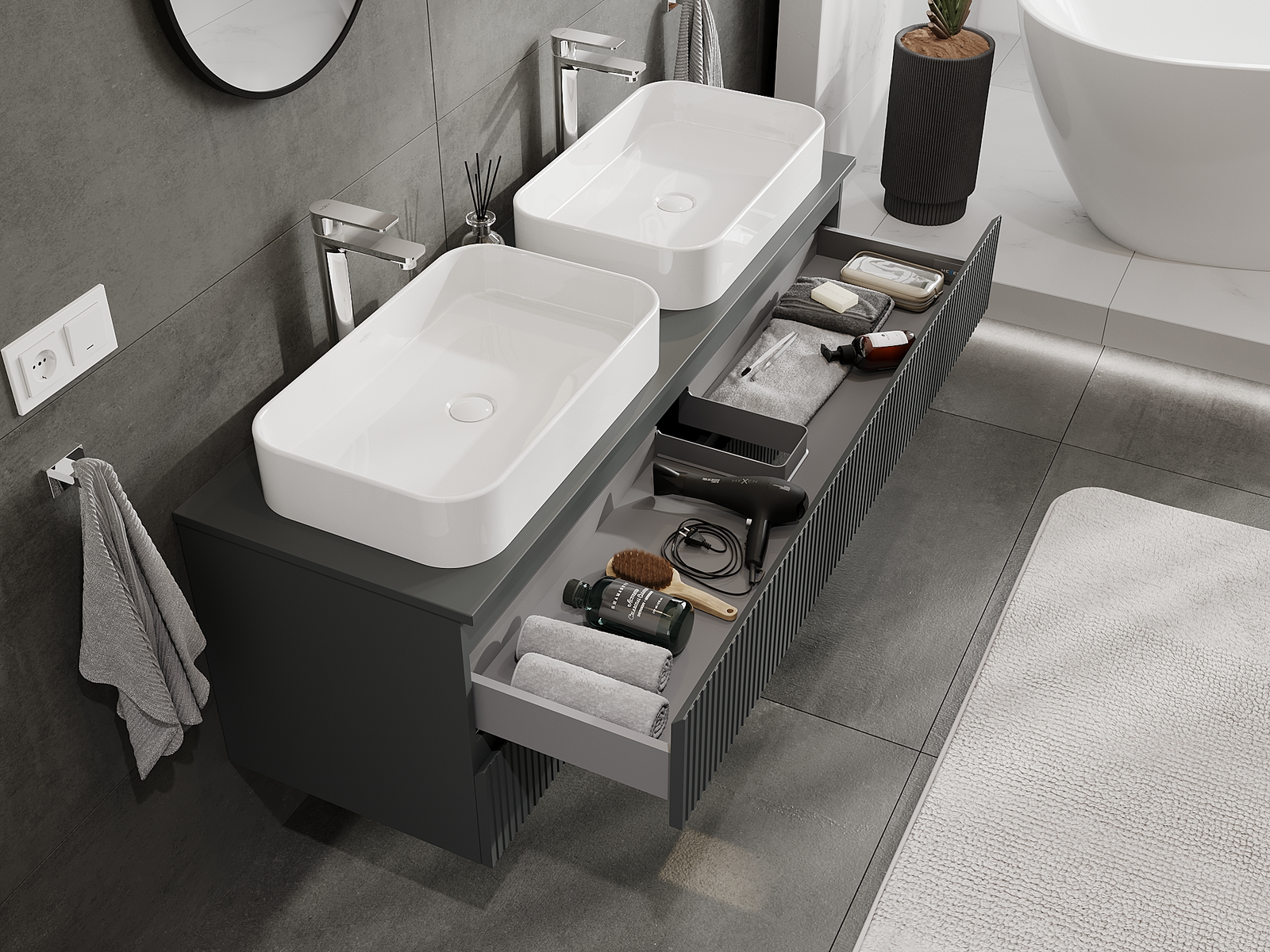 Výřez v zásuvce je navržen tak, aby pojmul sifon, který je nezbytný v instalacích umyvadlových. Díky tomu může být nábytek plně funkčně namontován, aniž by bylo nutné vzdát se prostoru v zásuvce ve prospěch instalace.