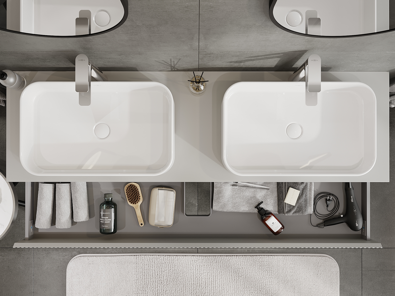 Výřez v zásuvce je navržen tak, aby pojmul sifon, který je nezbytný v instalacích umyvadlových. Díky tomu může být nábytek plně funkčně namontován, aniž by bylo nutné vzdát se prostoru v zásuvce ve prospěch instalace.