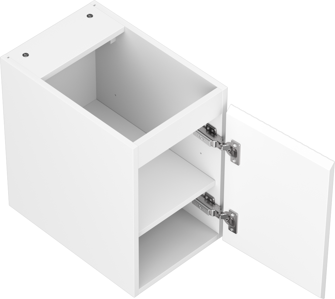 Korpus skříňky je dodáván zcela smontovaný, což znamená maximální pohodlí a úsporu času. Nemusíte ztrácet hodiny skládáním nábytku – stačí jej namontovat na vybrané místo v koupelně. Je to ideální řešení pro osoby, které si cení rychlé montáže a okamžitého efektu.
