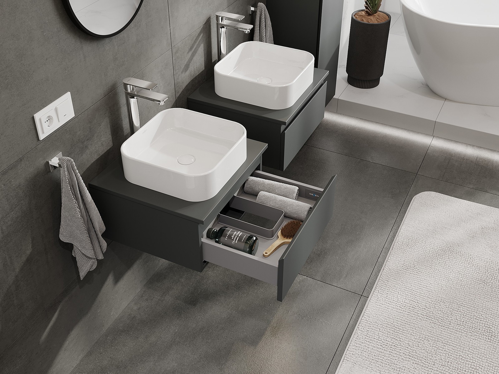 Mexen Orio koupelnová skříňka pod umyvadlo 50 cm s deskou, 1 zásuvka, grafitová matná - 91A10-05023-1-BFC66