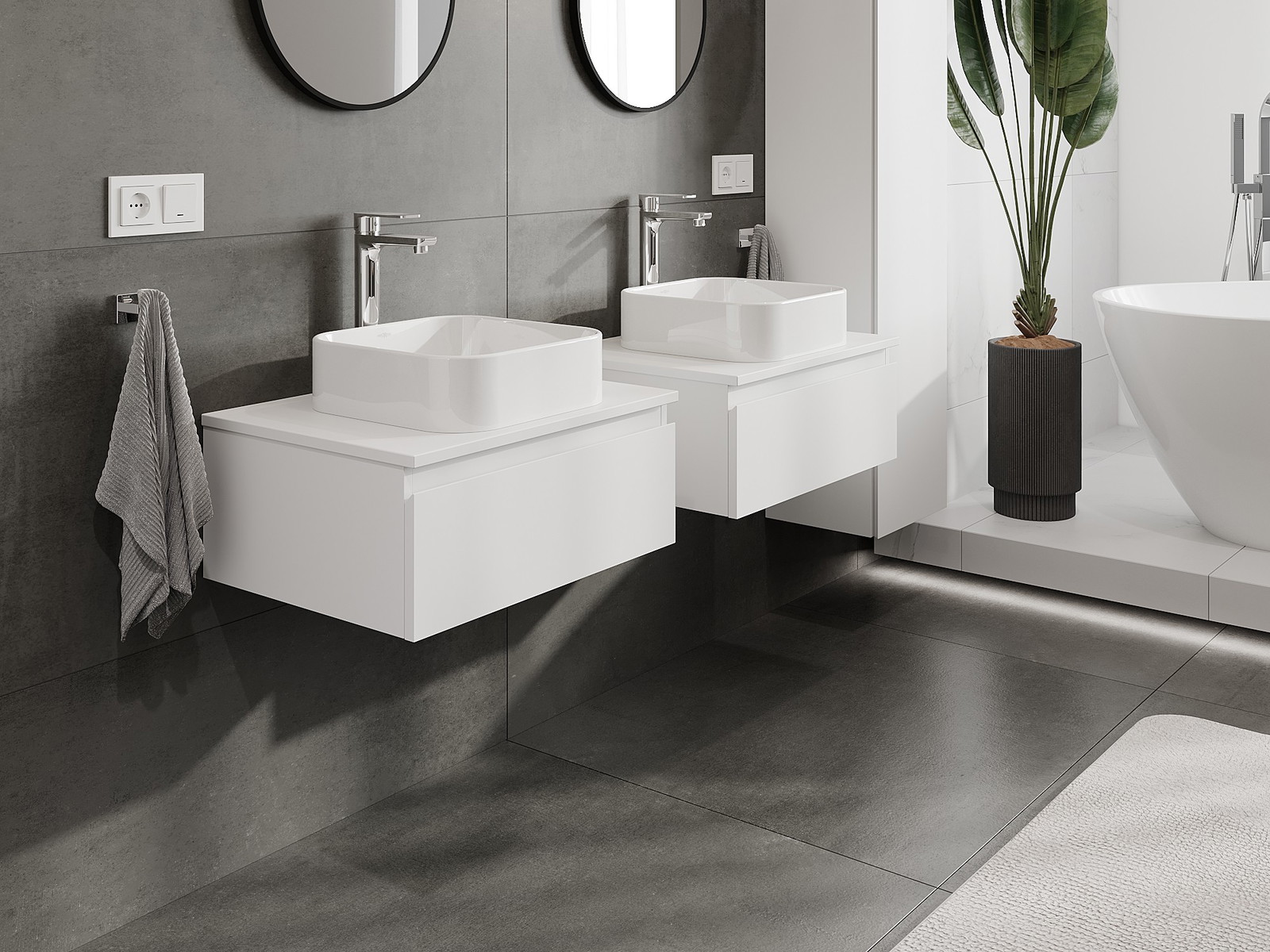 Naše modulární koupelnový nábytek lze kombinovat v různých barevných konfiguracích, což umožňuje plnou personalizaci. Můžete si vybrat jak vzhled, tak funkce jednotlivých prvků, což umožňuje přizpůsobit nábytek vašim stylovým a uživatelským preferencím.