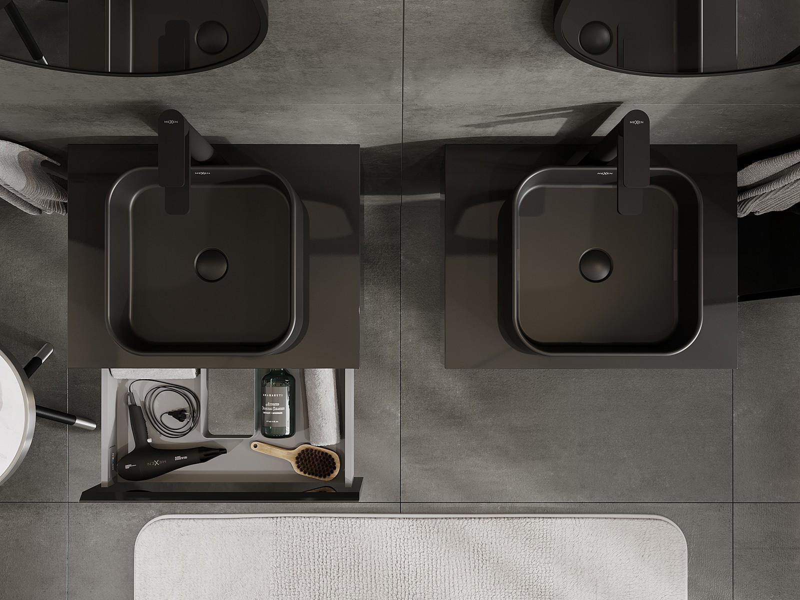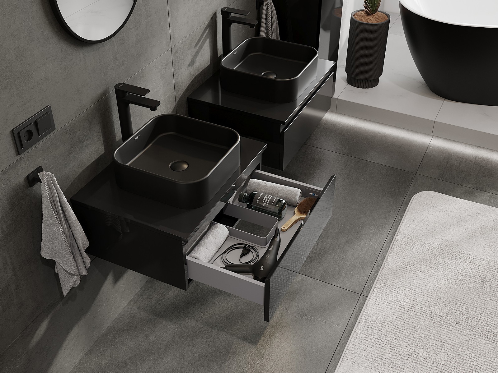 Výřez v zásuvce je navržen tak, aby pojmul sifon, který je nezbytný v instalacích umyvadlových. Díky tomu může být nábytek plně funkčně namontován, aniž by bylo nutné vzdát se prostoru v zásuvce ve prospěch instalace.