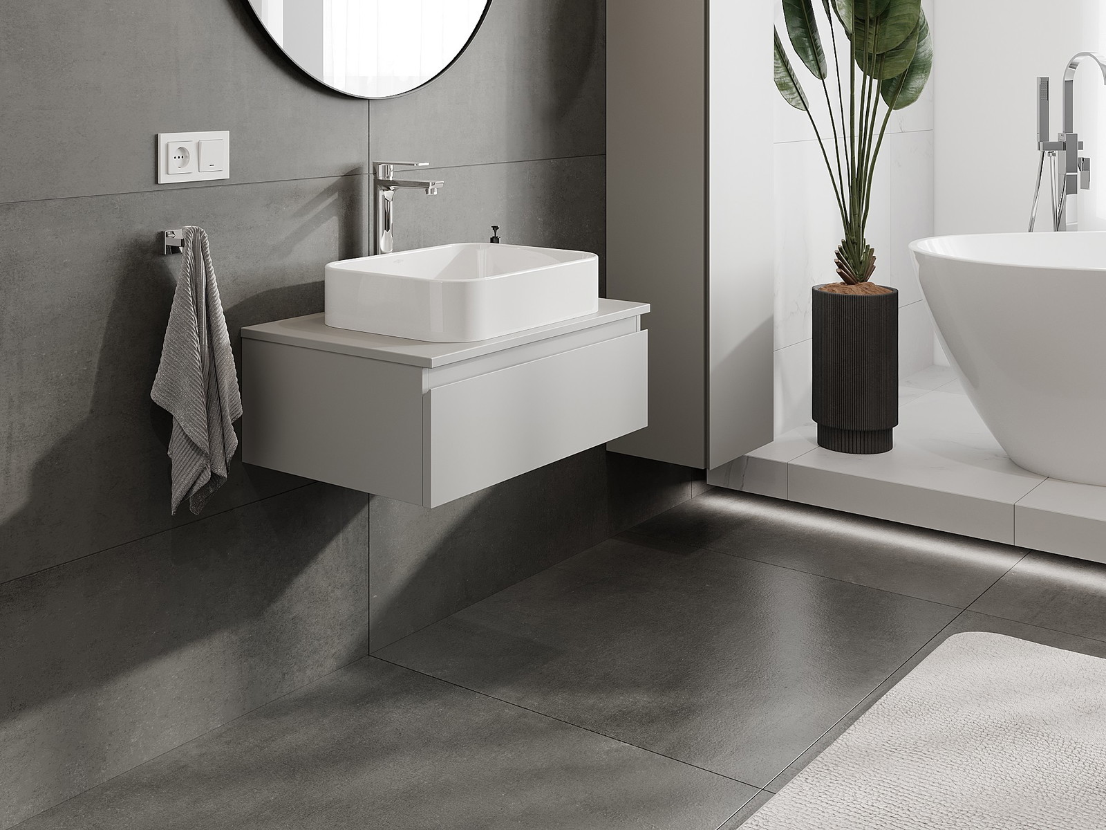 Naše modulární koupelnový nábytek lze kombinovat v různých barevných konfiguracích, což umožňuje plnou personalizaci. Můžete si vybrat jak vzhled, tak funkce jednotlivých prvků, což umožňuje přizpůsobit nábytek vašim stylovým a uživatelským preferencím.