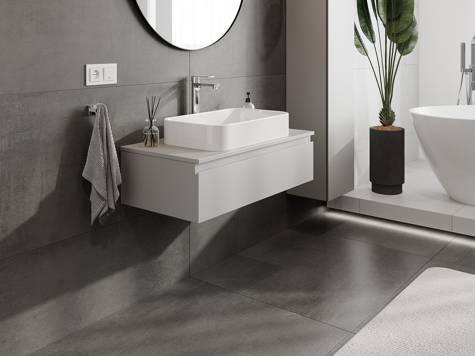 Naše modulární koupelnový nábytek lze kombinovat v různých barevných konfiguracích, což umožňuje plnou personalizaci. Můžete si vybrat jak vzhled, tak funkce jednotlivých prvků, což umožňuje přizpůsobit nábytek vašim stylovým a uživatelským preferencím.