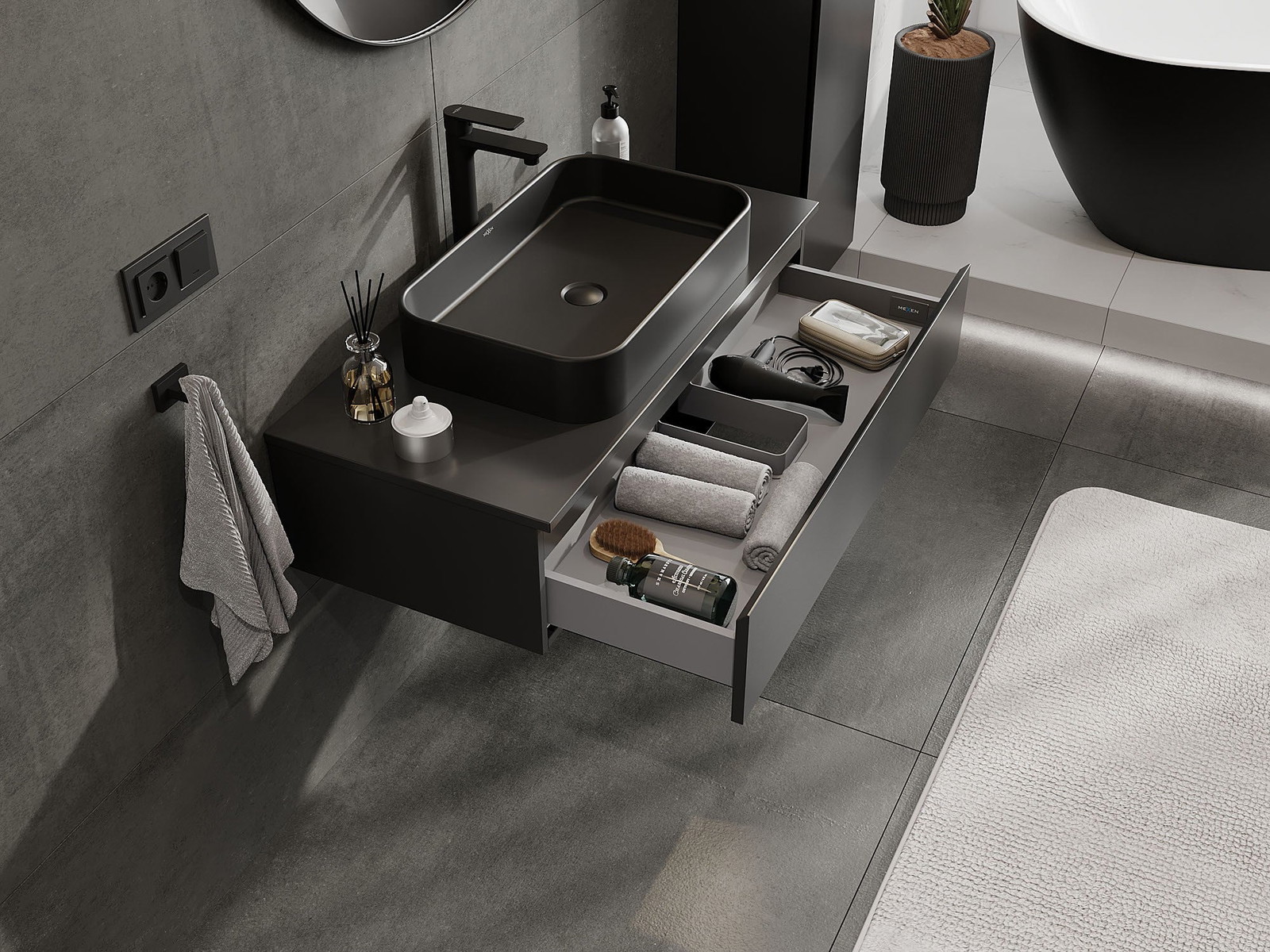 Výřez v zásuvce je navržen tak, aby pojmul sifon, který je nezbytný v instalacích umyvadlových. Díky tomu může být nábytek plně funkčně namontován, aniž by bylo nutné vzdát se prostoru v zásuvce ve prospěch instalace.
