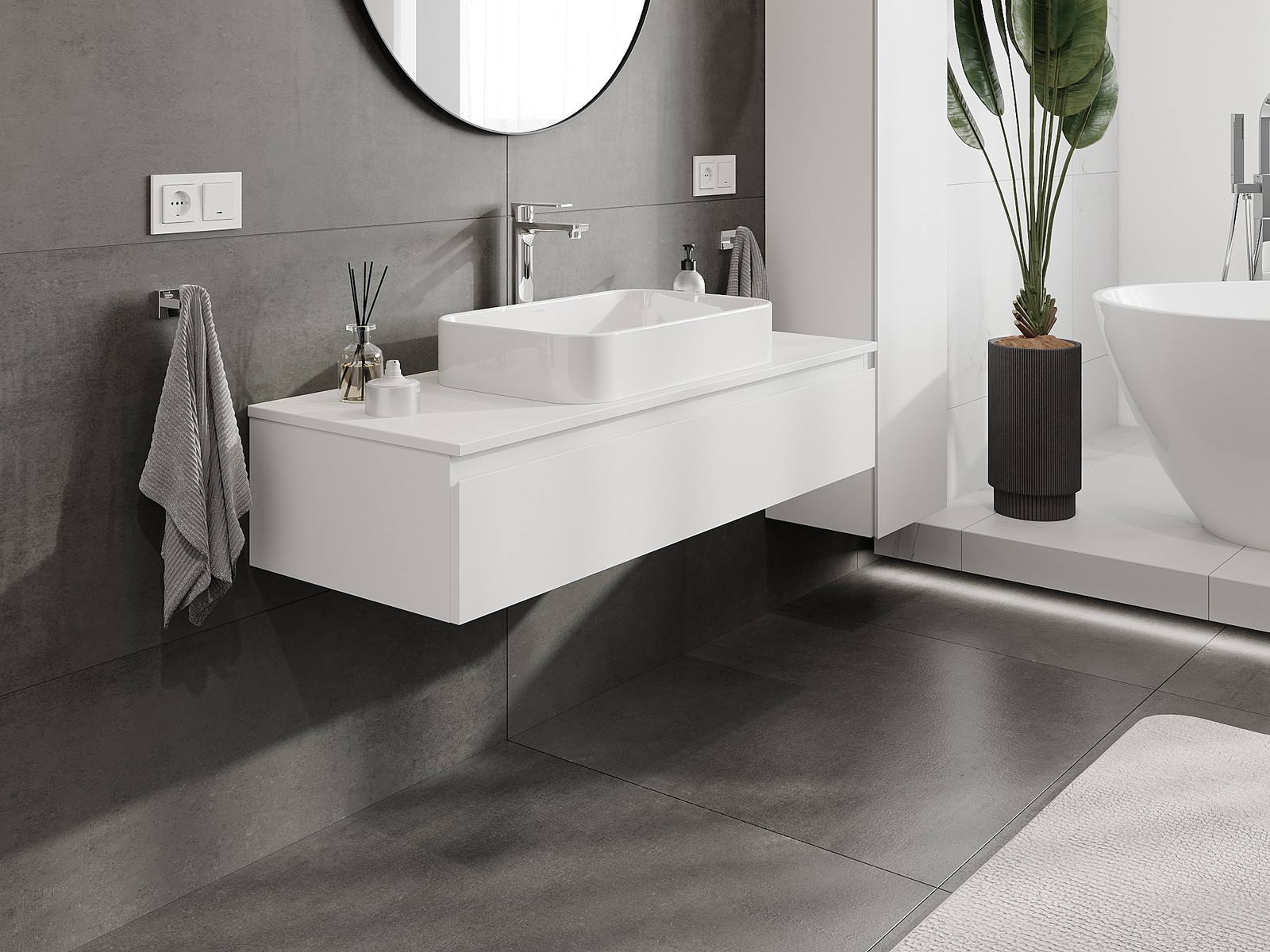 Naše modulární koupelnový nábytek lze kombinovat v různých barevných konfiguracích, což umožňuje plnou personalizaci. Můžete si vybrat jak vzhled, tak funkce jednotlivých prvků, což umožňuje přizpůsobit nábytek vašim stylovým a uživatelským preferencím.