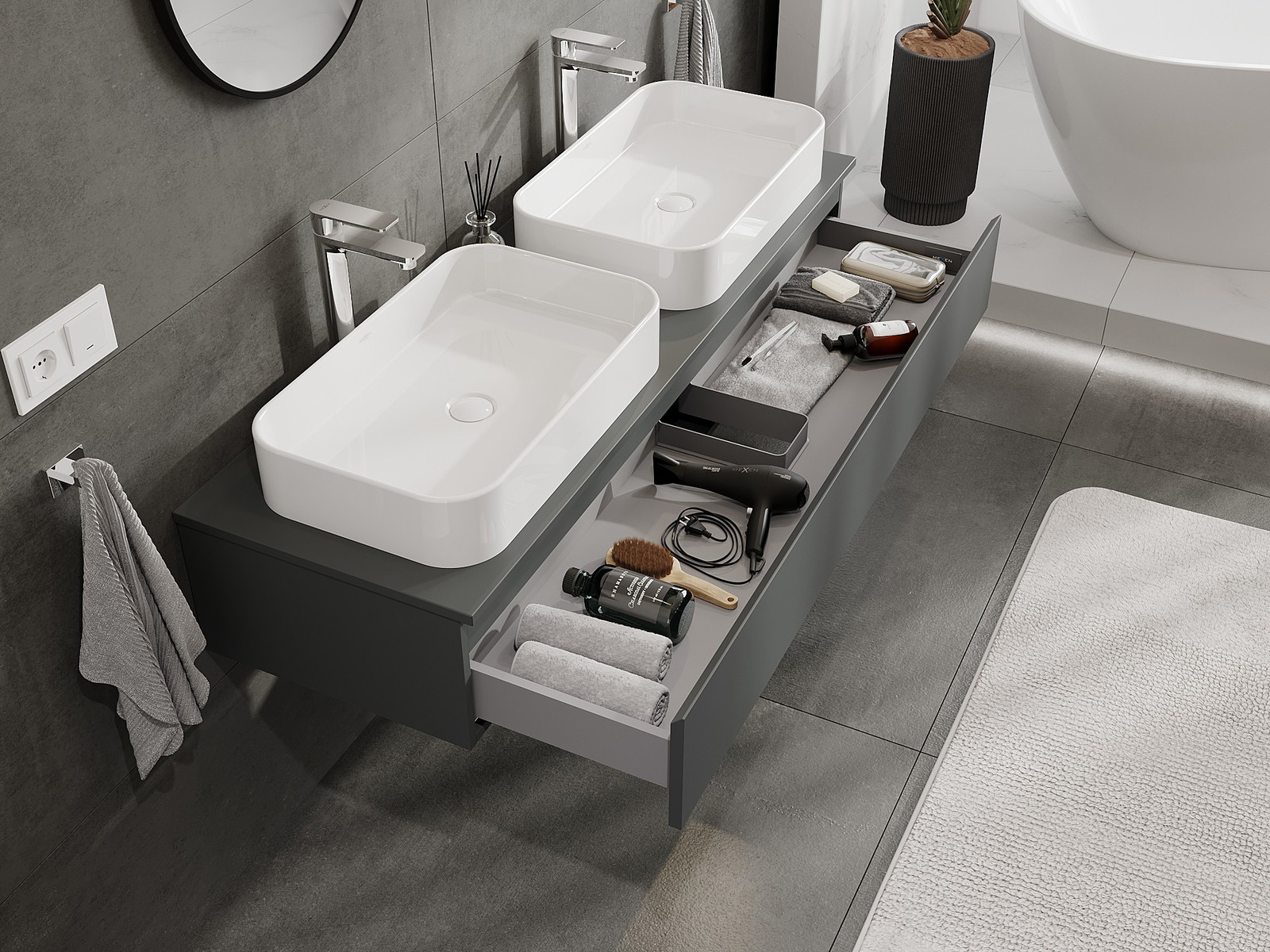 Naše modulární koupelnový nábytek lze kombinovat v různých barevných konfiguracích, což umožňuje plnou personalizaci. Můžete si vybrat jak vzhled, tak funkce jednotlivých prvků, což umožňuje přizpůsobit nábytek vašim stylovým a uživatelským preferencím.