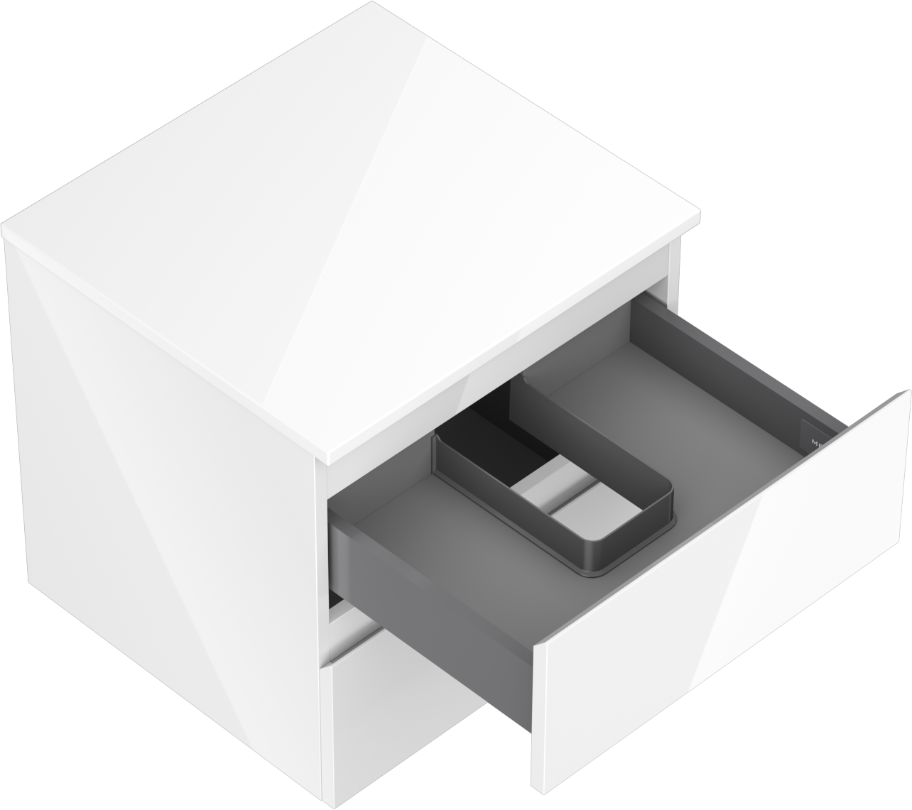 Výřez v zásuvce je navržen tak, aby pojmul sifon, který je nezbytný v instalacích umyvadlových. Díky tomu může být nábytek plně funkčně namontován, aniž by bylo nutné vzdát se prostoru v zásuvce ve prospěch instalace.