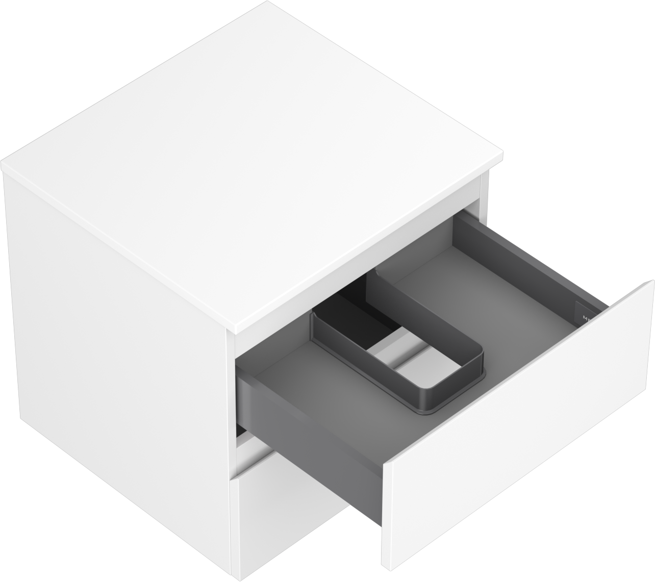 Výřez v zásuvce je navržen tak, aby pojmul sifon, který je nezbytný v instalacích umyvadlových. Díky tomu může být nábytek plně funkčně namontován, aniž by bylo nutné vzdát se prostoru v zásuvce ve prospěch instalace.