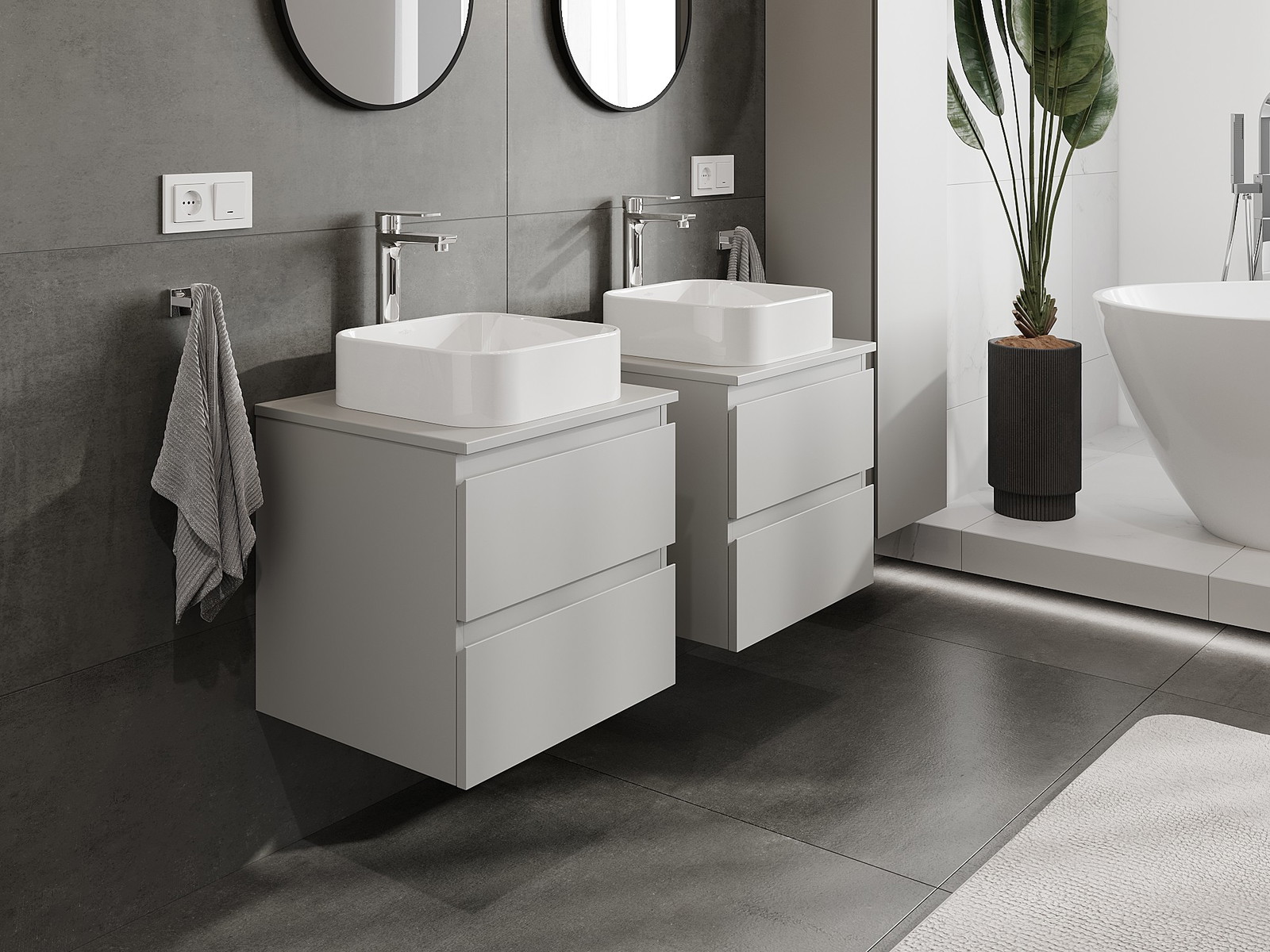 Naše modulární koupelnový nábytek lze kombinovat v různých barevných konfiguracích, což umožňuje plnou personalizaci. Můžete si vybrat jak vzhled, tak funkce jednotlivých prvků, což umožňuje přizpůsobit nábytek vašim stylovým a uživatelským preferencím.