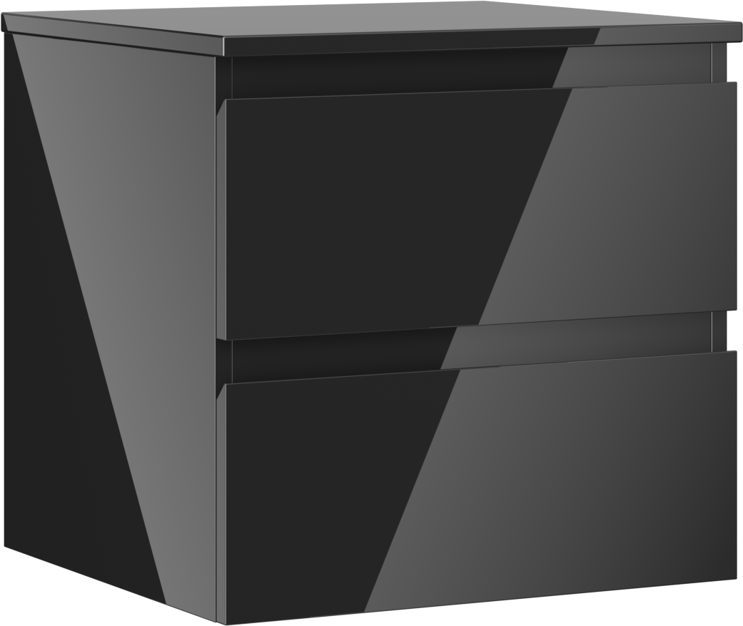 Mexen Orio koupelnová skříňka pod umyvadlo 50 cm s deskou, 2 zásuvky, černý lesk - 91A10-05047-2-BFFC70