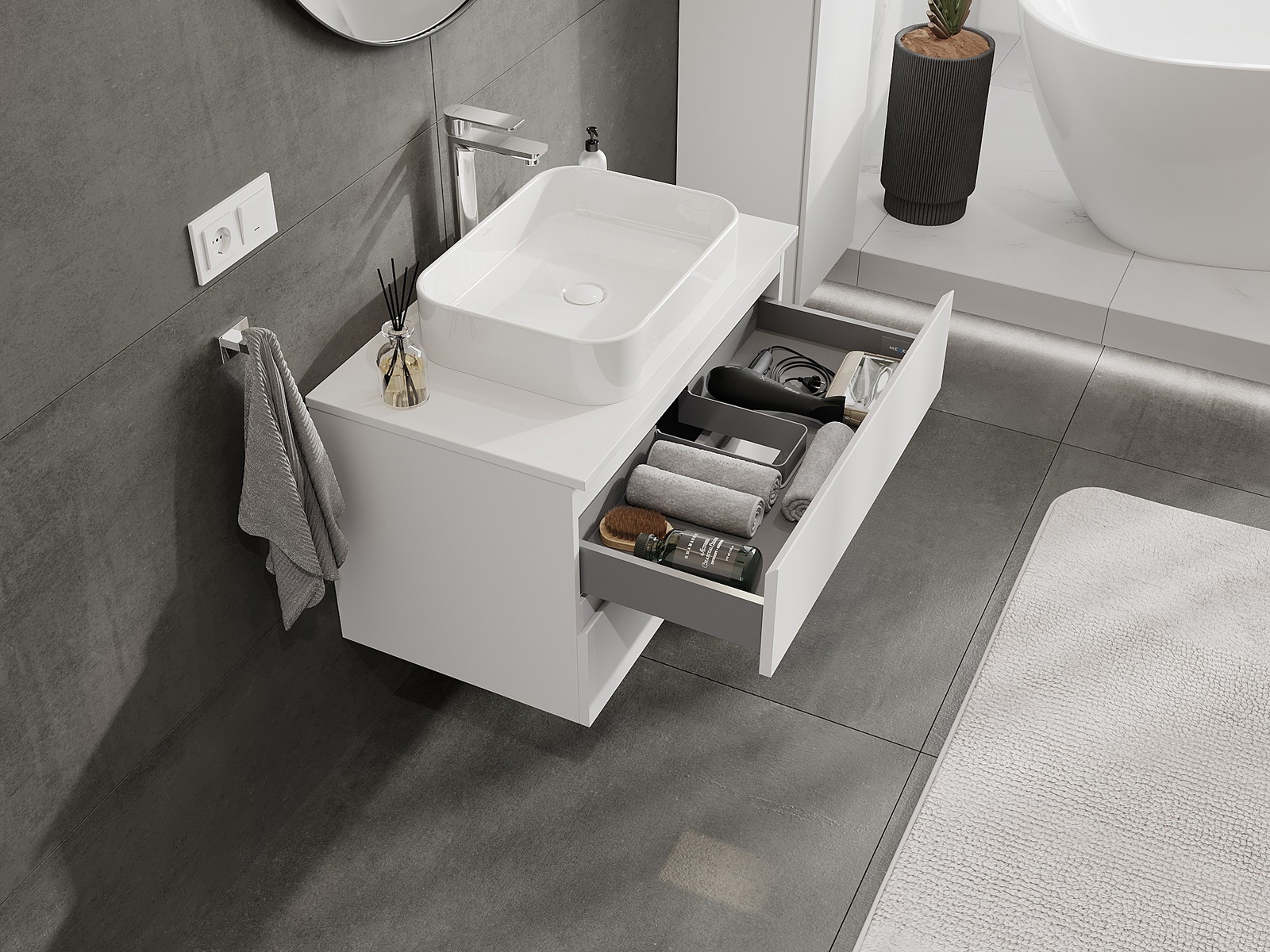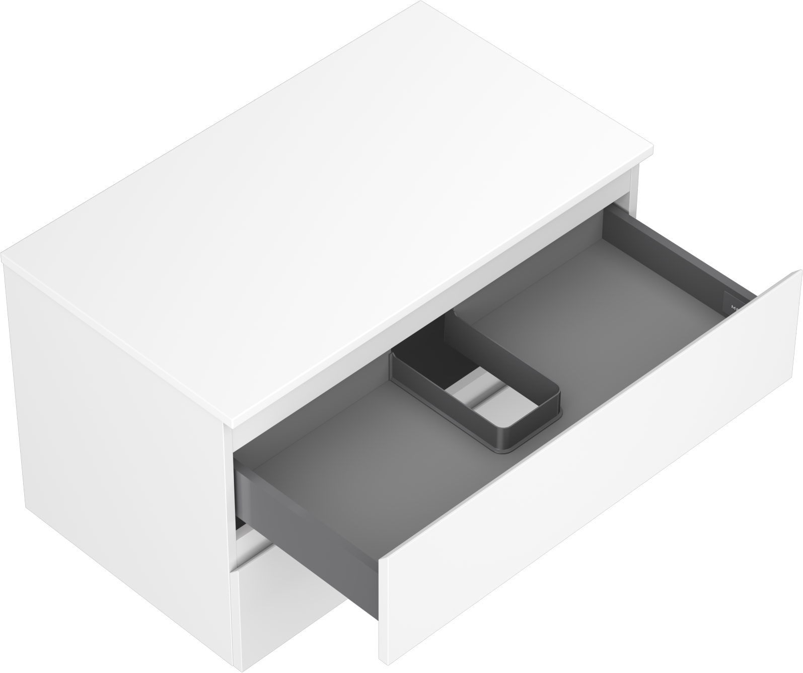 Výřez v zásuvce je navržen tak, aby pojmul sifon, který je nezbytný v instalacích umyvadlových. Díky tomu může být nábytek plně funkčně namontován, aniž by bylo nutné vzdát se prostoru v zásuvce ve prospěch instalace.