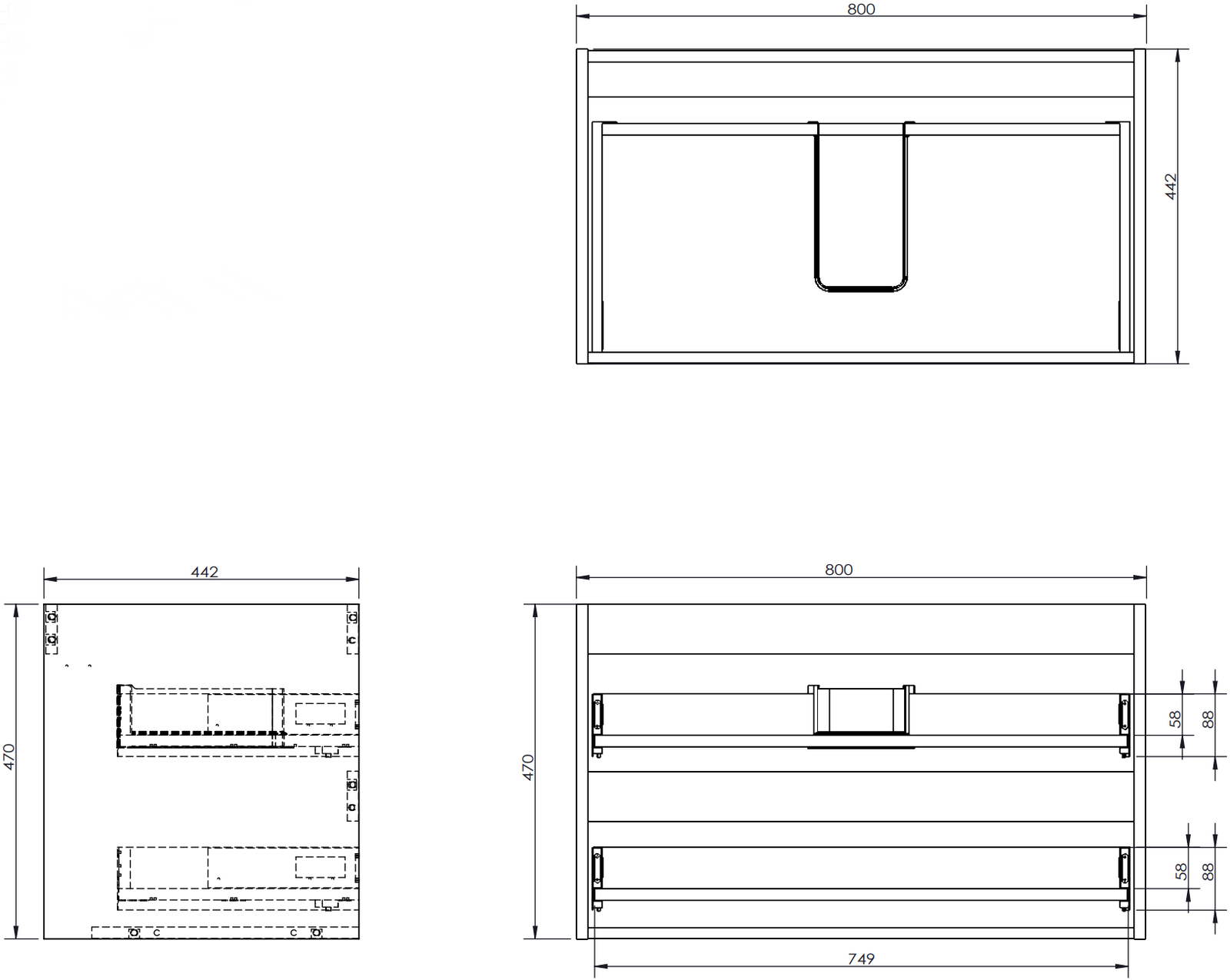 Výřez v zásuvce je navržen tak, aby pojmul sifon, který je nezbytný v instalacích umyvadlových. Díky tomu může být nábytek plně funkčně namontován, aniž by bylo nutné vzdát se prostoru v zásuvce ve prospěch instalace.