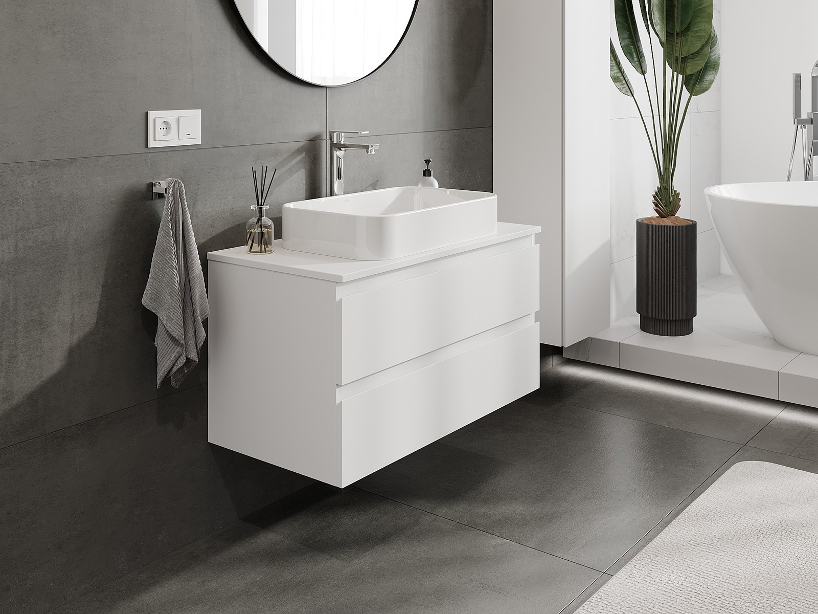 Naše modulární koupelnový nábytek lze kombinovat v různých barevných konfiguracích, což umožňuje plnou personalizaci. Můžete si vybrat jak vzhled, tak funkce jednotlivých prvků, což umožňuje přizpůsobit nábytek vašim stylovým a uživatelským preferencím.