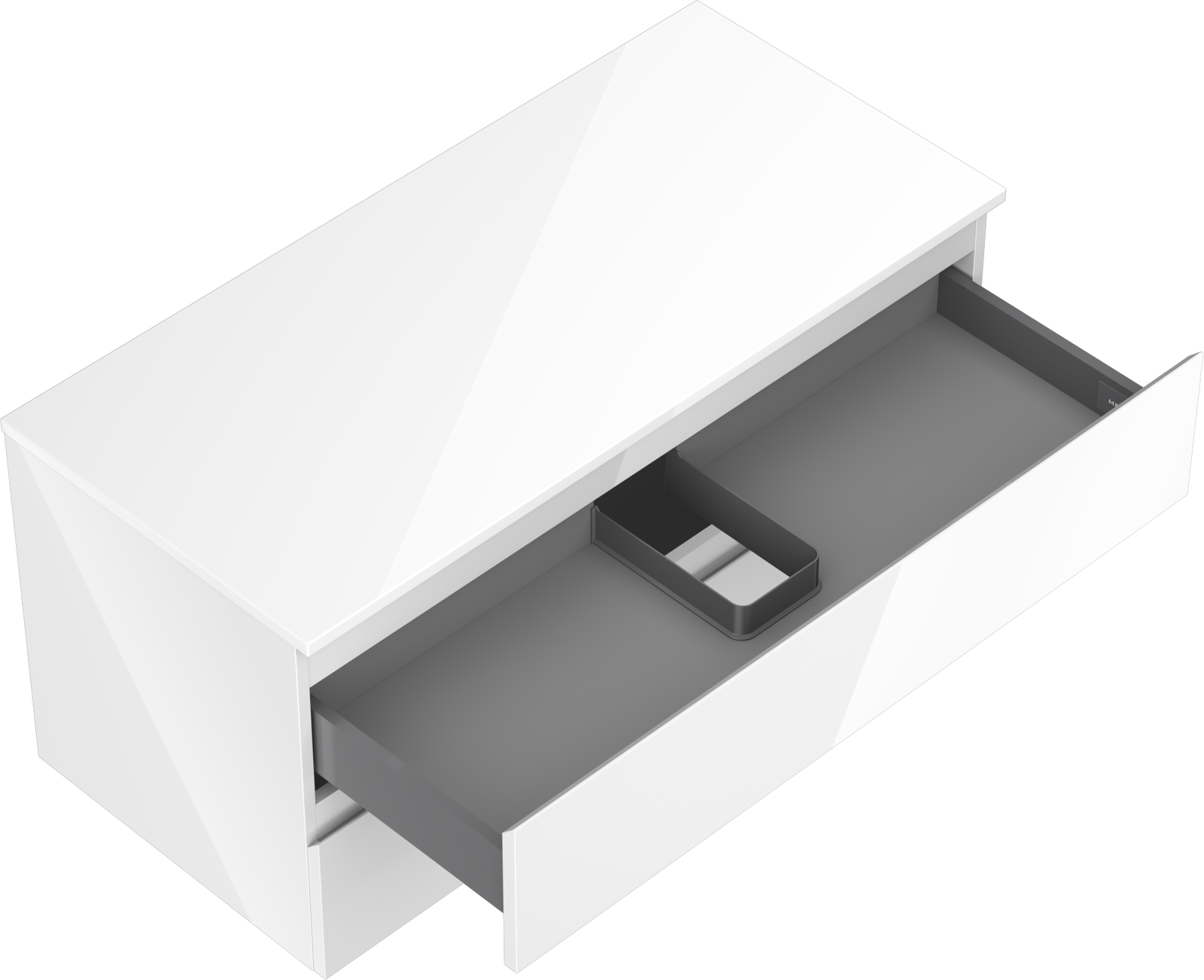 Výřez v zásuvce je navržen tak, aby pojmul sifon, který je nezbytný v instalacích umyvadlových. Díky tomu může být nábytek plně funkčně namontován, aniž by bylo nutné vzdát se prostoru v zásuvce ve prospěch instalace.