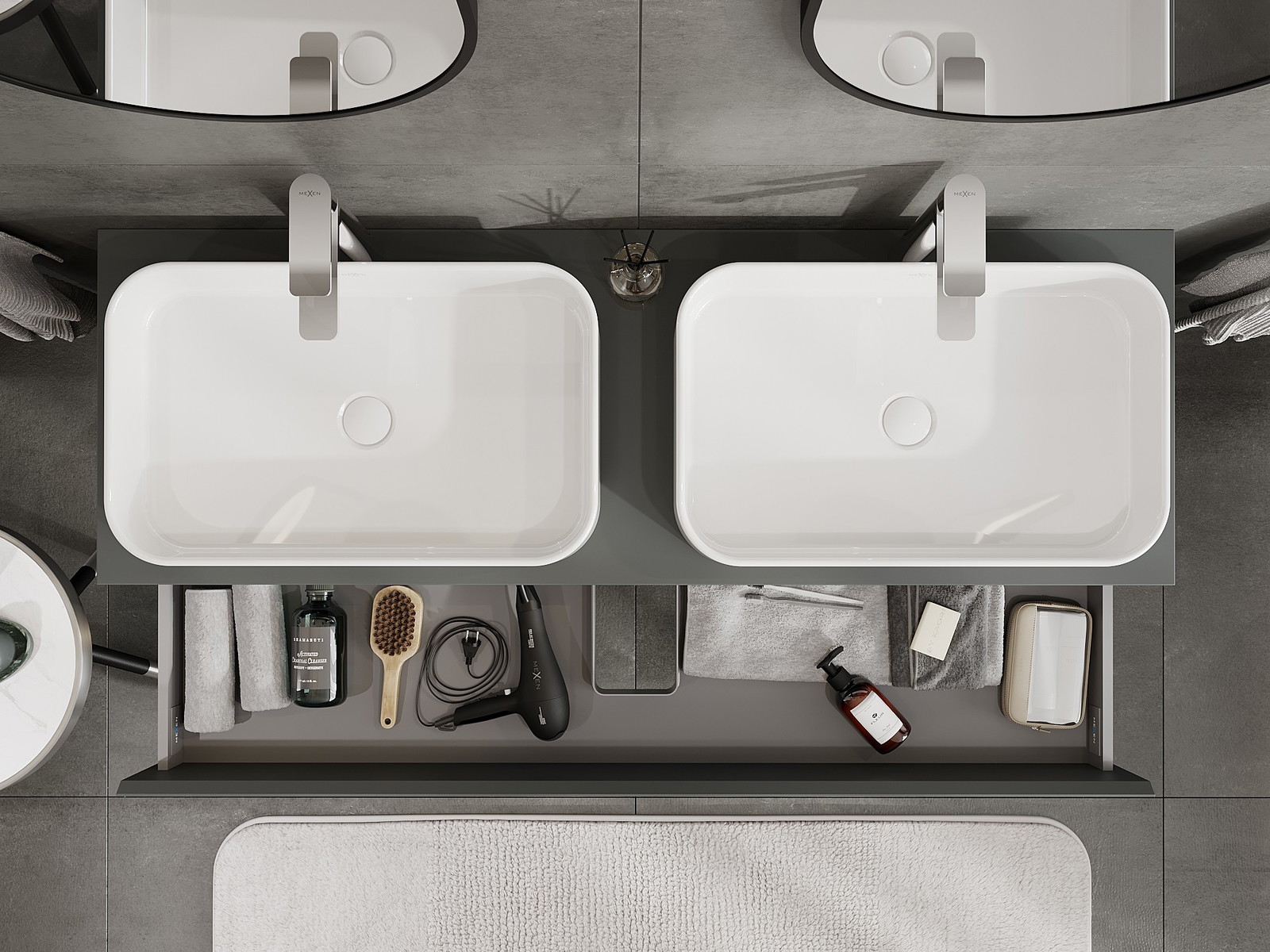 Výřez v zásuvce je navržen tak, aby pojmul sifon, který je nezbytný v instalacích umyvadlových. Díky tomu může být nábytek plně funkčně namontován, aniž by bylo nutné vzdát se prostoru v zásuvce ve prospěch instalace.