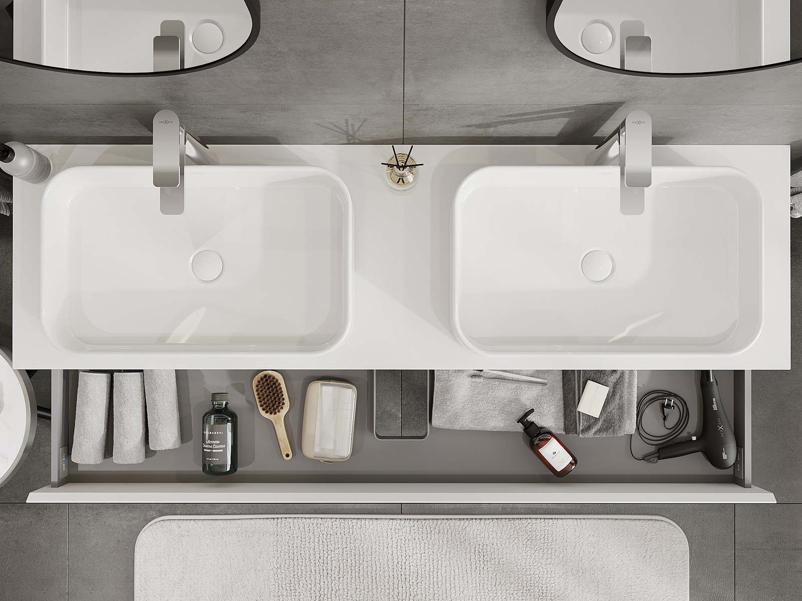 Výřez v zásuvce je navržen tak, aby pojmul sifon, který je nezbytný v instalacích umyvadlových. Díky tomu může být nábytek plně funkčně namontován, aniž by bylo nutné vzdát se prostoru v zásuvce ve prospěch instalace.