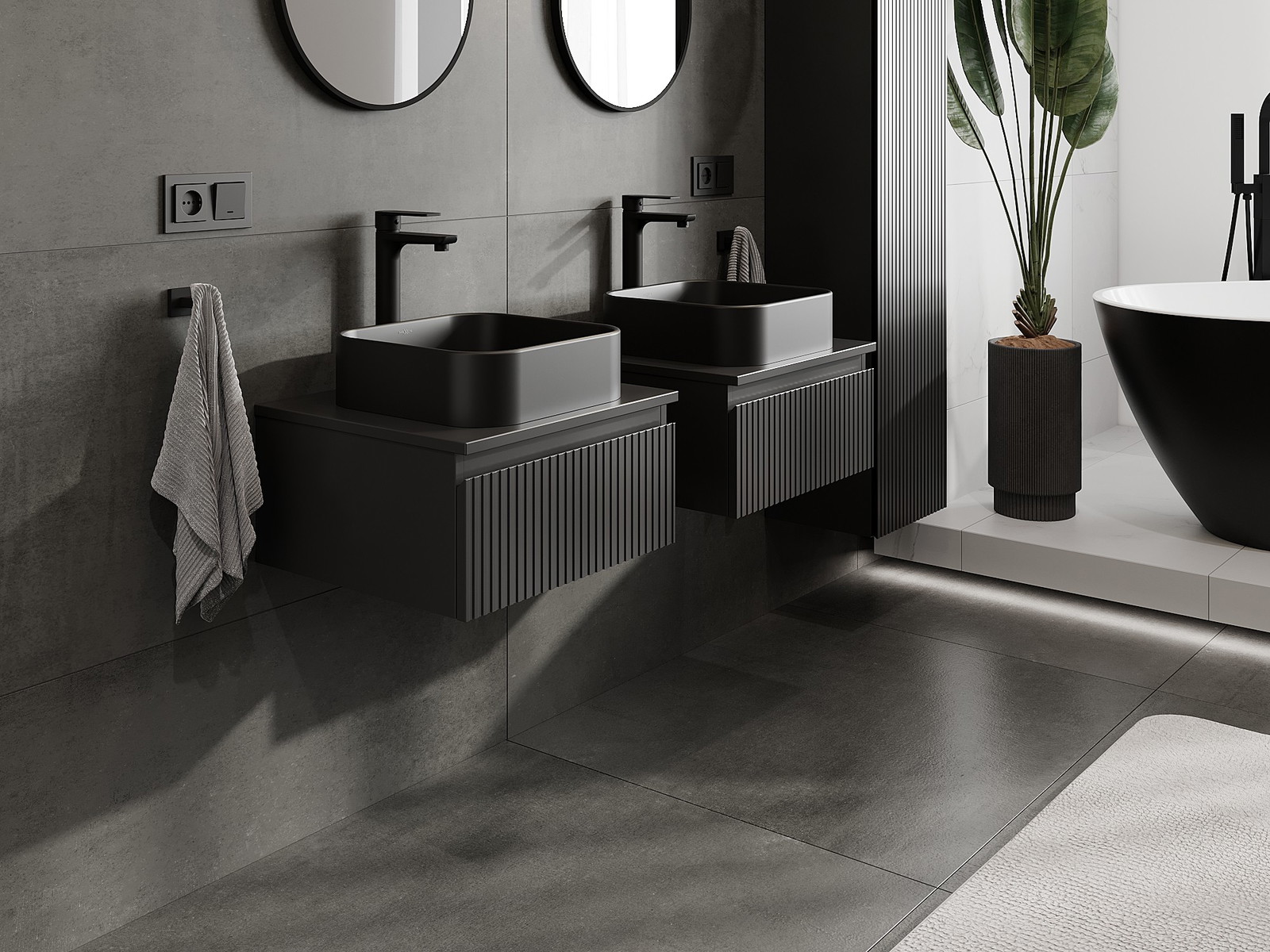 Mexen Rivel koupelnová skříňka pod umyvadlo 50 cm s deskou, 1 zásuvka, drážkovaná, černý mat - 91A20-05023-1-BFC71