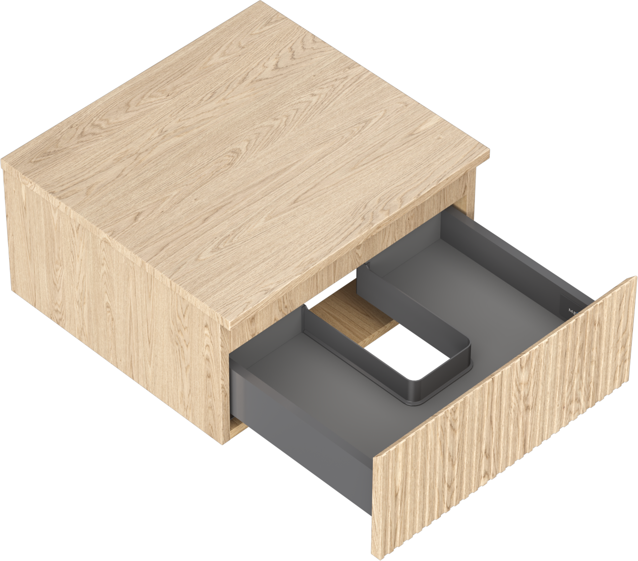 Výřez v zásuvce je navržen tak, aby pojmul sifon, který je nezbytný v instalacích umyvadlových. Díky tomu může být nábytek plně funkčně namontován, aniž by bylo nutné vzdát se prostoru v zásuvce ve prospěch instalace.