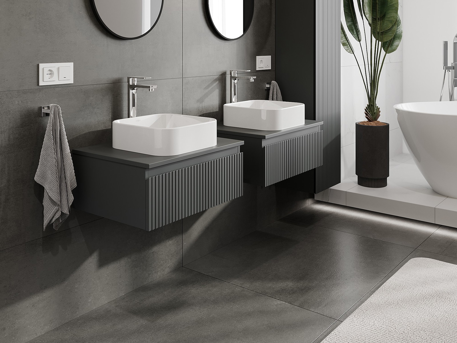 Naše modulární koupelnový nábytek lze kombinovat v různých barevných konfiguracích, což umožňuje plnou personalizaci. Můžete si vybrat jak vzhled, tak funkce jednotlivých prvků, což umožňuje přizpůsobit nábytek vašim stylovým a uživatelským preferencím.