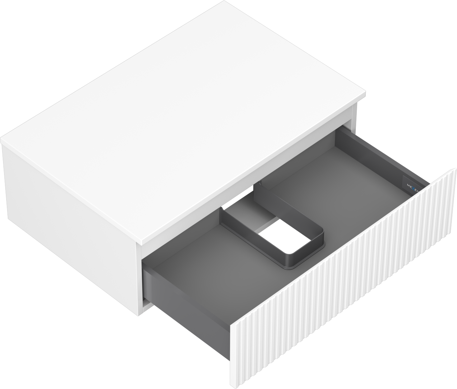 Výřez v zásuvce je navržen tak, aby pojmul sifon, který je nezbytný v instalacích umyvadlových. Díky tomu může být nábytek plně funkčně namontován, aniž by bylo nutné vzdát se prostoru v zásuvce ve prospěch instalace.