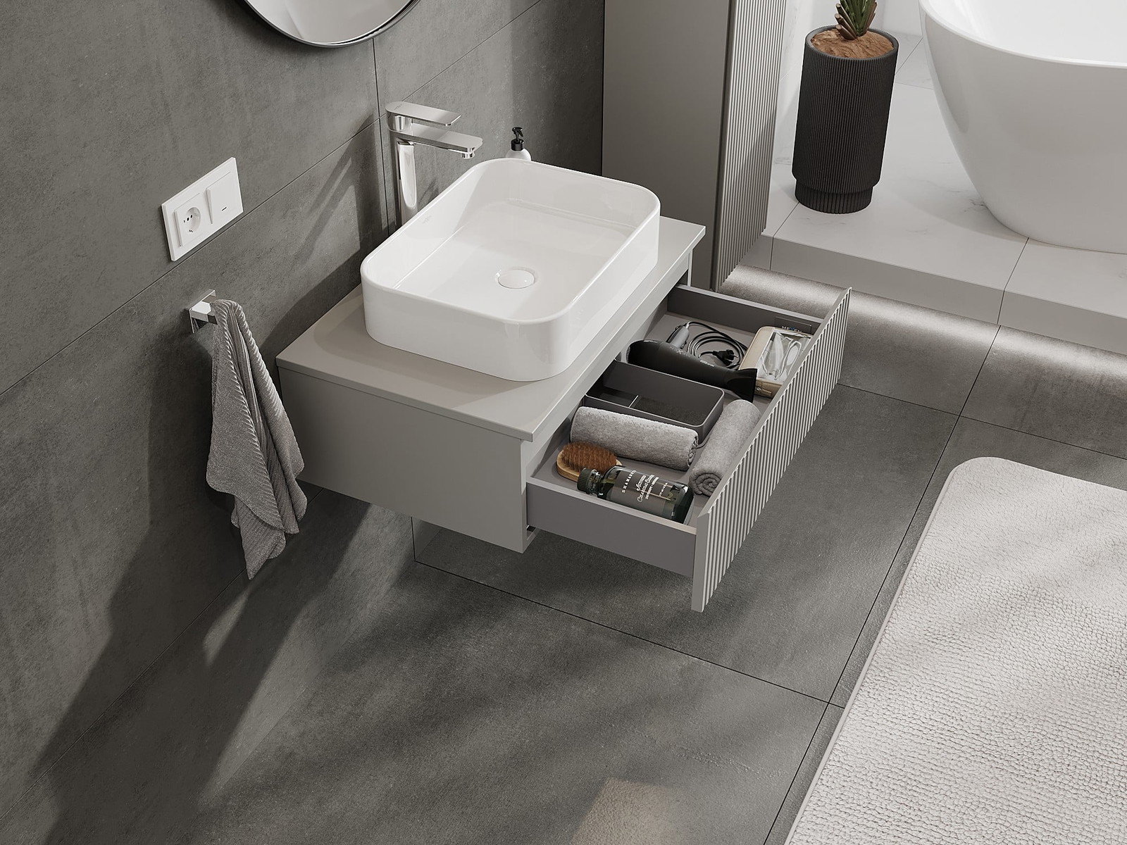 Mexen Rivel koupelnová skříňka pod umyvadlo 70 cm s deskou, 1 zásuvka, drážkovaná, šedá mat - 91A20-07023-1-BFC62