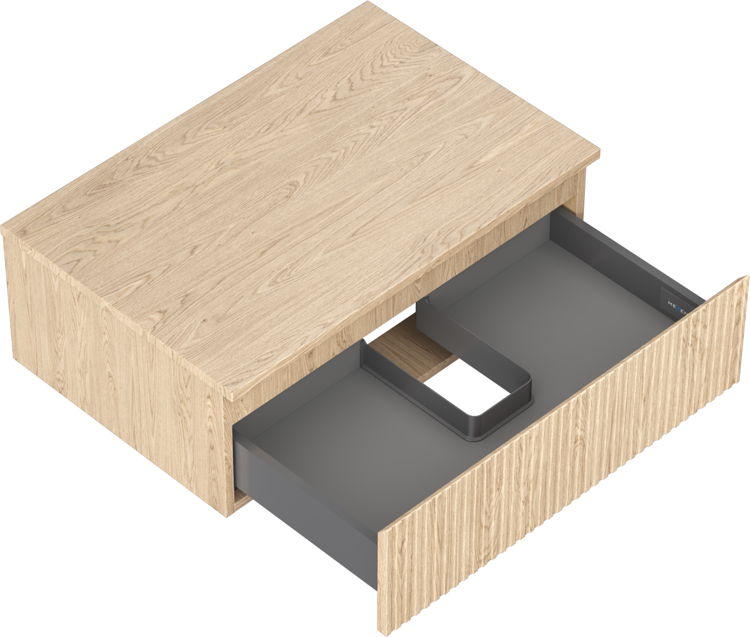 Výřez v zásuvce je navržen tak, aby pojmul sifon, který je nezbytný v instalacích umyvadlových. Díky tomu může být nábytek plně funkčně namontován, aniž by bylo nutné vzdát se prostoru v zásuvce ve prospěch instalace.