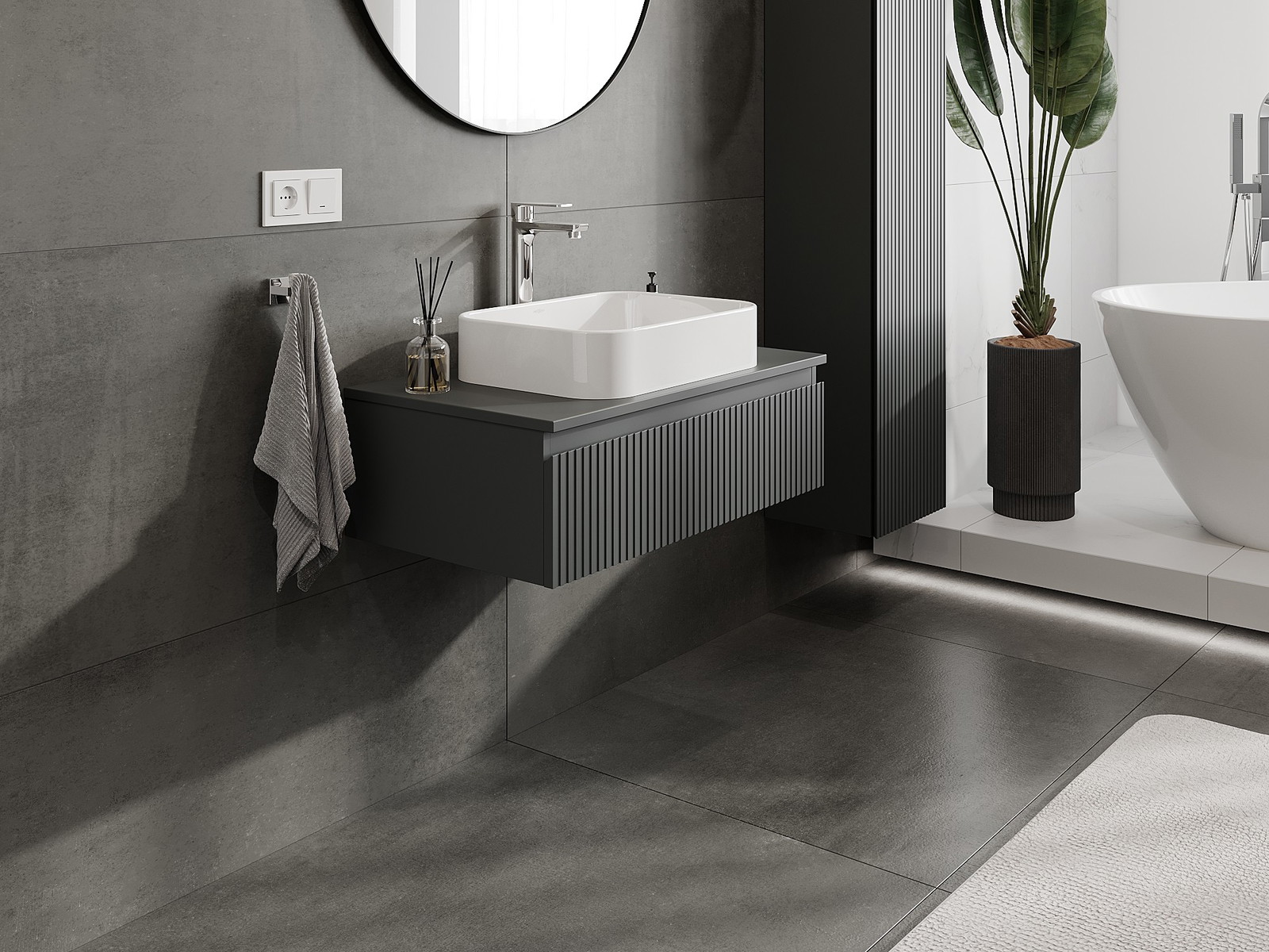 Naše modulární koupelnový nábytek lze kombinovat v různých barevných konfiguracích, což umožňuje plnou personalizaci. Můžete si vybrat jak vzhled, tak funkce jednotlivých prvků, což umožňuje přizpůsobit nábytek vašim stylovým a uživatelským preferencím.