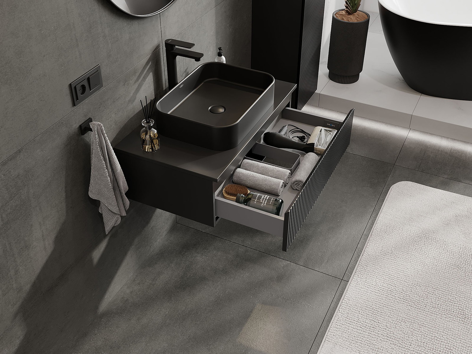 Výřez v zásuvce je navržen tak, aby pojmul sifon, který je nezbytný v instalacích umyvadlových. Díky tomu může být nábytek plně funkčně namontován, aniž by bylo nutné vzdát se prostoru v zásuvce ve prospěch instalace.