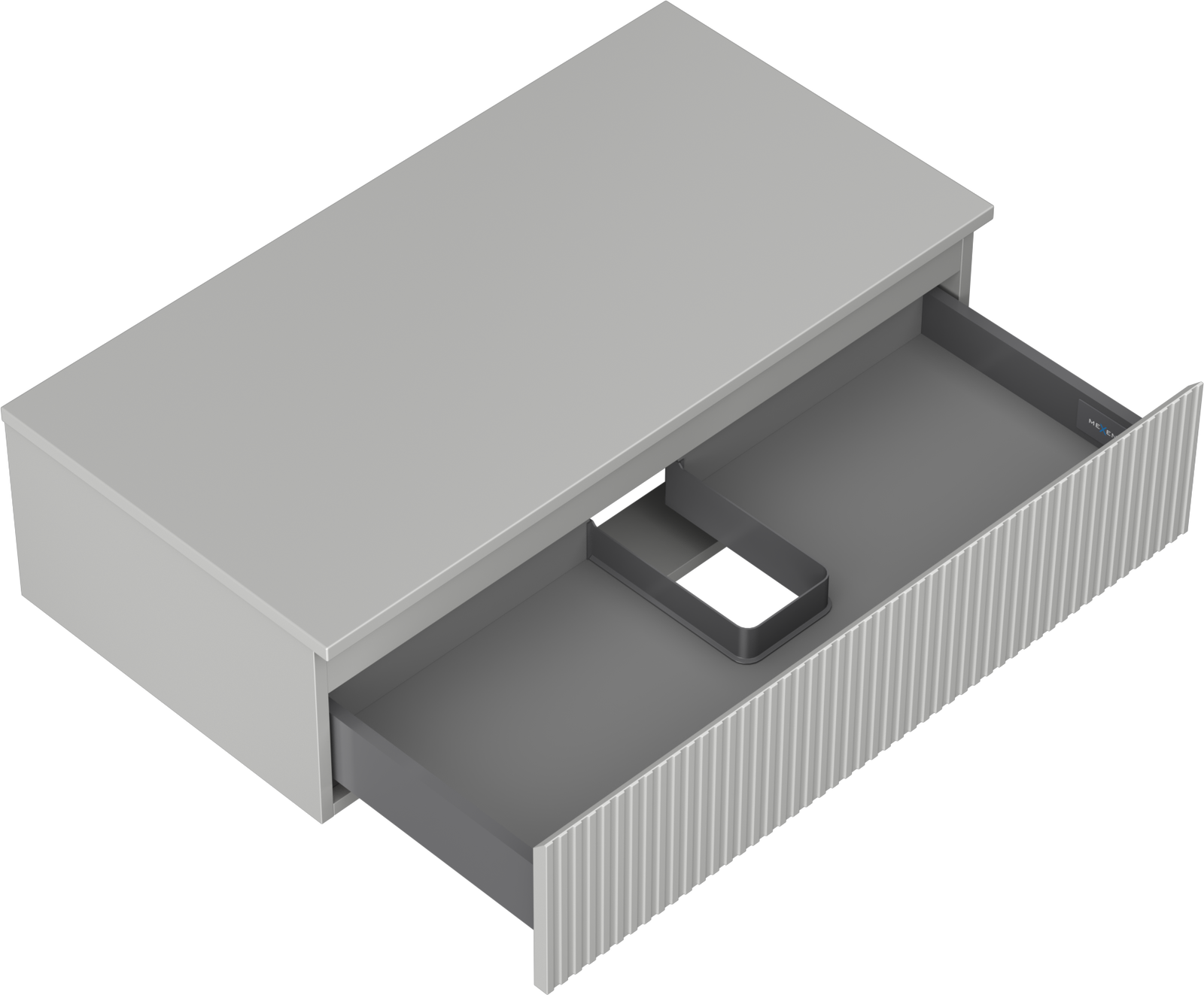 Výřez v zásuvce je navržen tak, aby pojmul sifon, který je nezbytný v instalacích umyvadlových. Díky tomu může být nábytek plně funkčně namontován, aniž by bylo nutné vzdát se prostoru v zásuvce ve prospěch instalace.