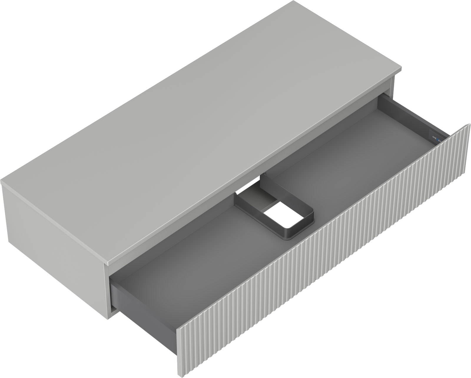Výřez v zásuvce je navržen tak, aby pojmul sifon, který je nezbytný v instalacích umyvadlových. Díky tomu může být nábytek plně funkčně namontován, aniž by bylo nutné vzdát se prostoru v zásuvce ve prospěch instalace.